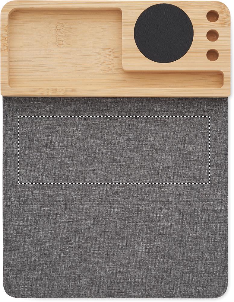 Langaton laturi bambua, jossa on myös puhelinteline, 3 kynätelinettä ja kokoontaitettava RPET-hiirimatto. Lähtö: DC 9V/1.67A (15W). Yhteensopiva kaikkien QI-toiminnolla varustettujen laitteiden, kuten uusimpien Androidien, iPhone® 8, X ja uudempien kanssa.