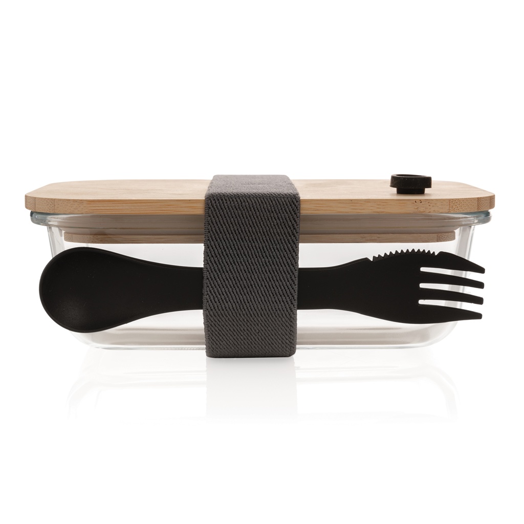 Logotrade mainostuote tuotekuva: Lasinen lounasrasia bambukannella