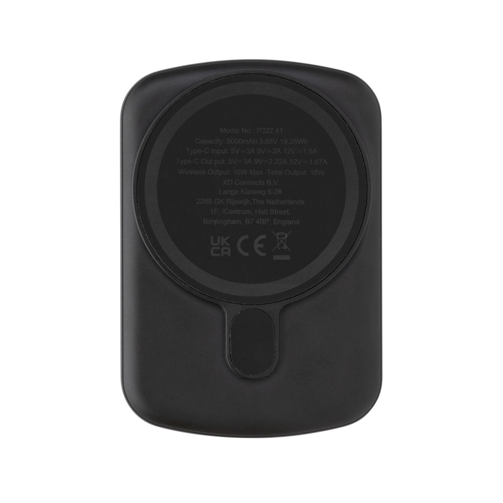 5000 mAh:n taskukokoinen virtapankki, jossa on 15W:n magneettinen langaton laturi, ja jonka kotelo on valmistettu RCS-sertifioidusta kierrätetystä ABS-muovista. RCS (Recycled Claim Standard) on standardi, jonka avulla tuotteen kierrätyspitoisuus voidaan todentaa koko toimitusketjussa. Kierrätetyn materiaalin kokonaismäärä: 21% tuotteen kokonaispainosta. Virtapankki sisältää pitkäikäisen A-luokan 5 000 mAh:n litiumpolymeeriakun. Integroitu digitaalinen LED-näyttö ilmoittaa jäljellä olevan energiamäärän, joten tiedät aina, milloin on aika ladata tuote uudelleen.; C-tyypin tulo 5V/2.4A; C-tyypin lähtö: 5V/2A.4A Tuote ja tarvikkeet PVC-vapaita. Mukana RCS-sertifioitu kierrätetty TPE-latauskaapeli. Pakattu FSC® mix -pakkaukseen. C-tyypin tulo: Langaton lähtö:: 15W