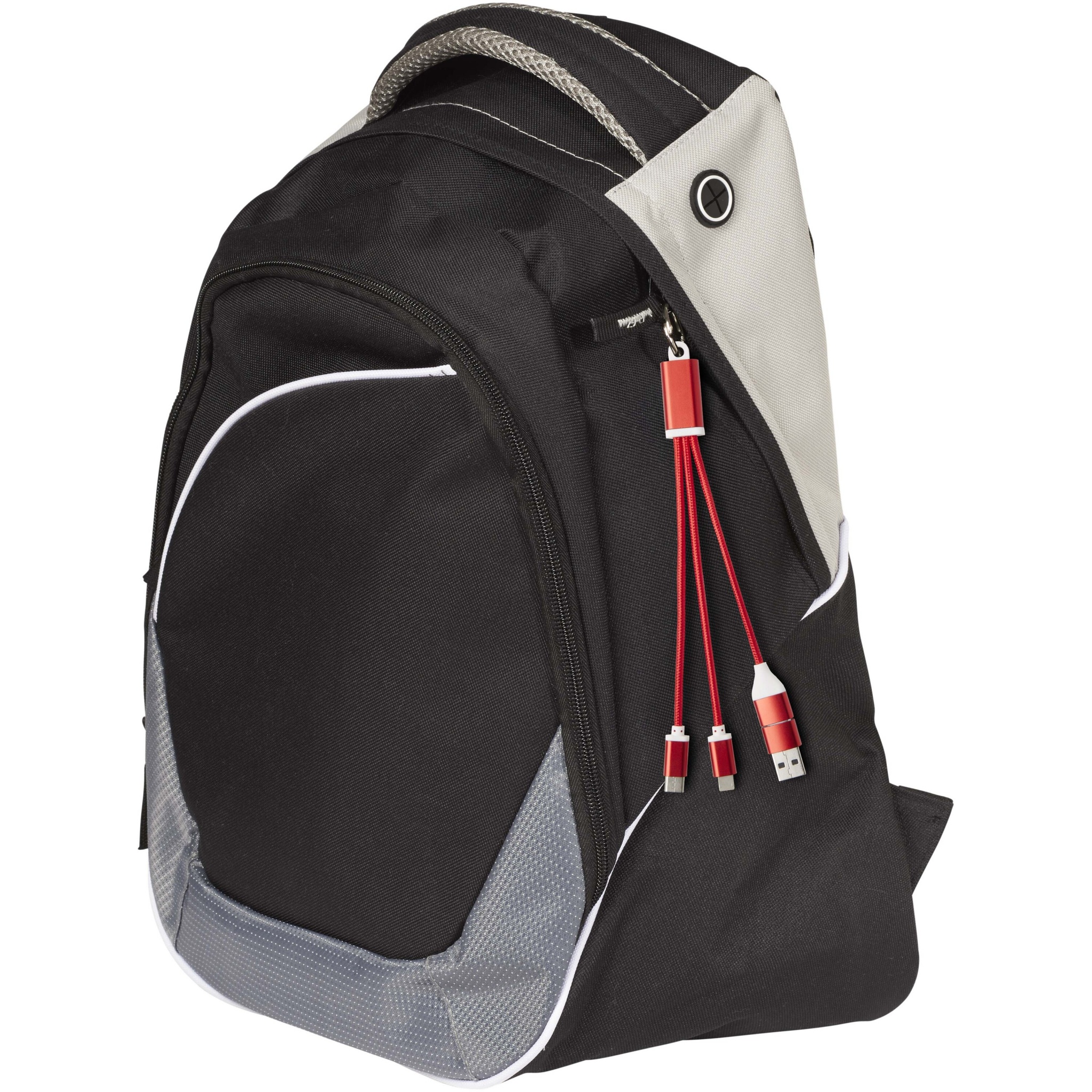 Kierrätetystä alumiinista valmistettu 4-in-1-avaimenperä-latauskaapeli, teho enintään 10 W. USB-A- ja Type-C-tuloliittimien sekä Type-C- ja Lightning/Micro USB -yhdistelmälähtöliittimien ansiosta (tukee Applen iOS- ja Android-laitteita) voit ladata useimpia älypuhelimia, kameroita, varavirtalähteitä ja kuulokkeita.