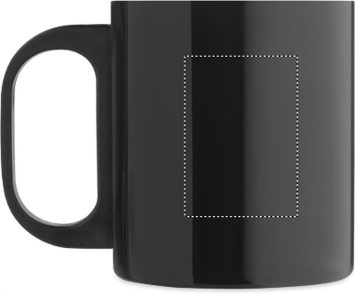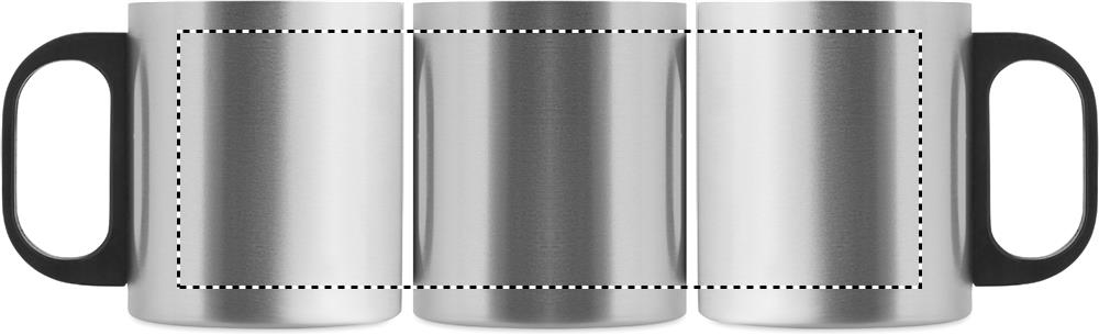 Kaksiseinäinen ruostumattomasta teräksestä valmistettu 300 ml muki PP-kahvalla.