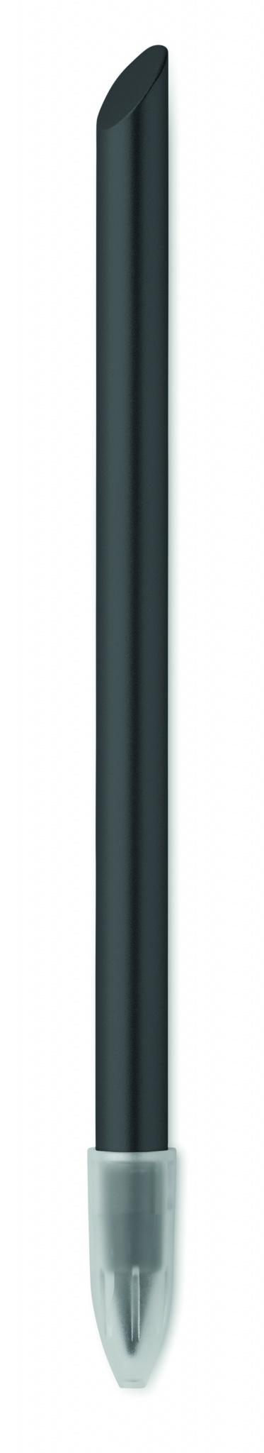 Pitkäikäinen kierrätetystä alumiinista valmistettu musteton kynä. Kynä kirjoittaa grafiittikärjellä, jossa on muovinen suojakuori.