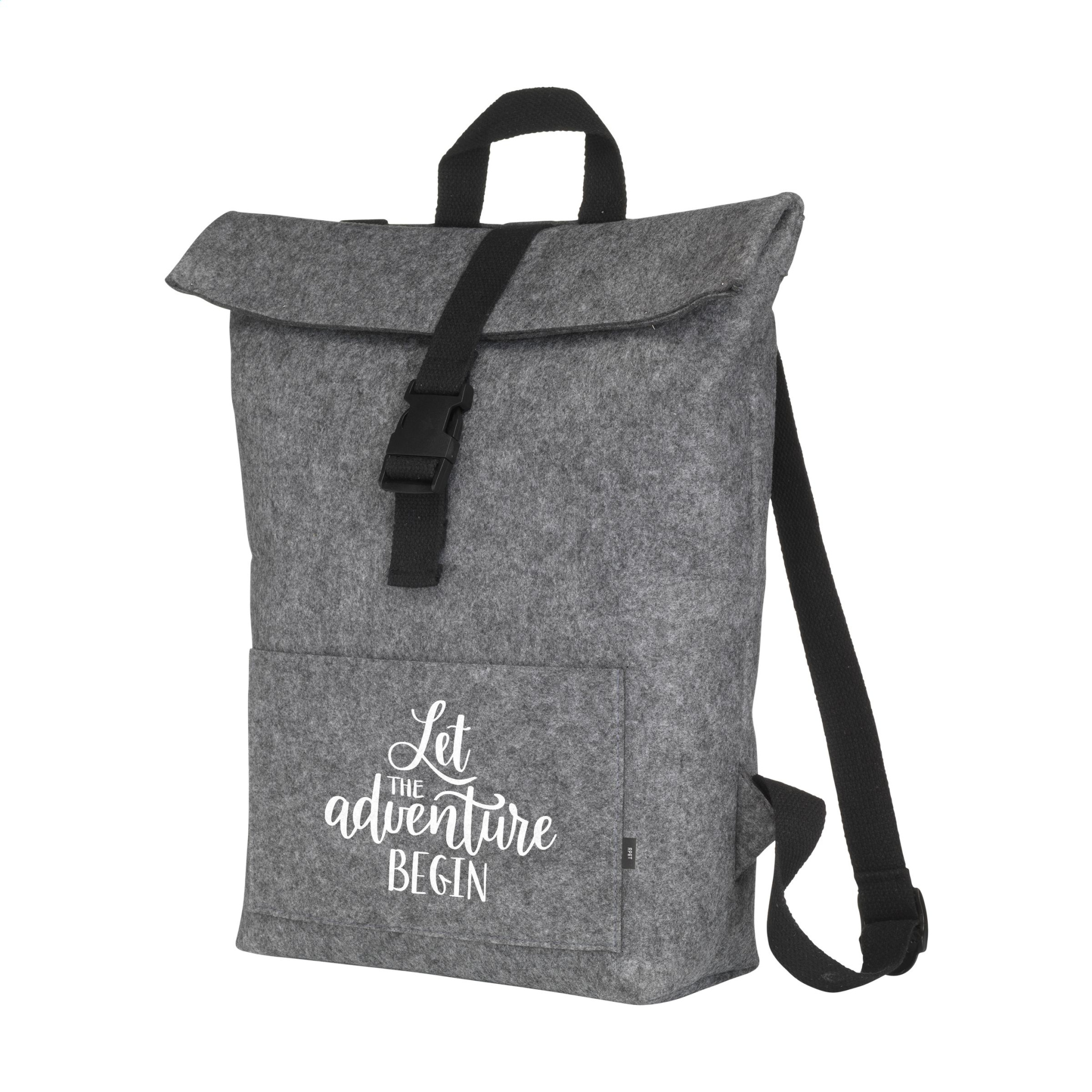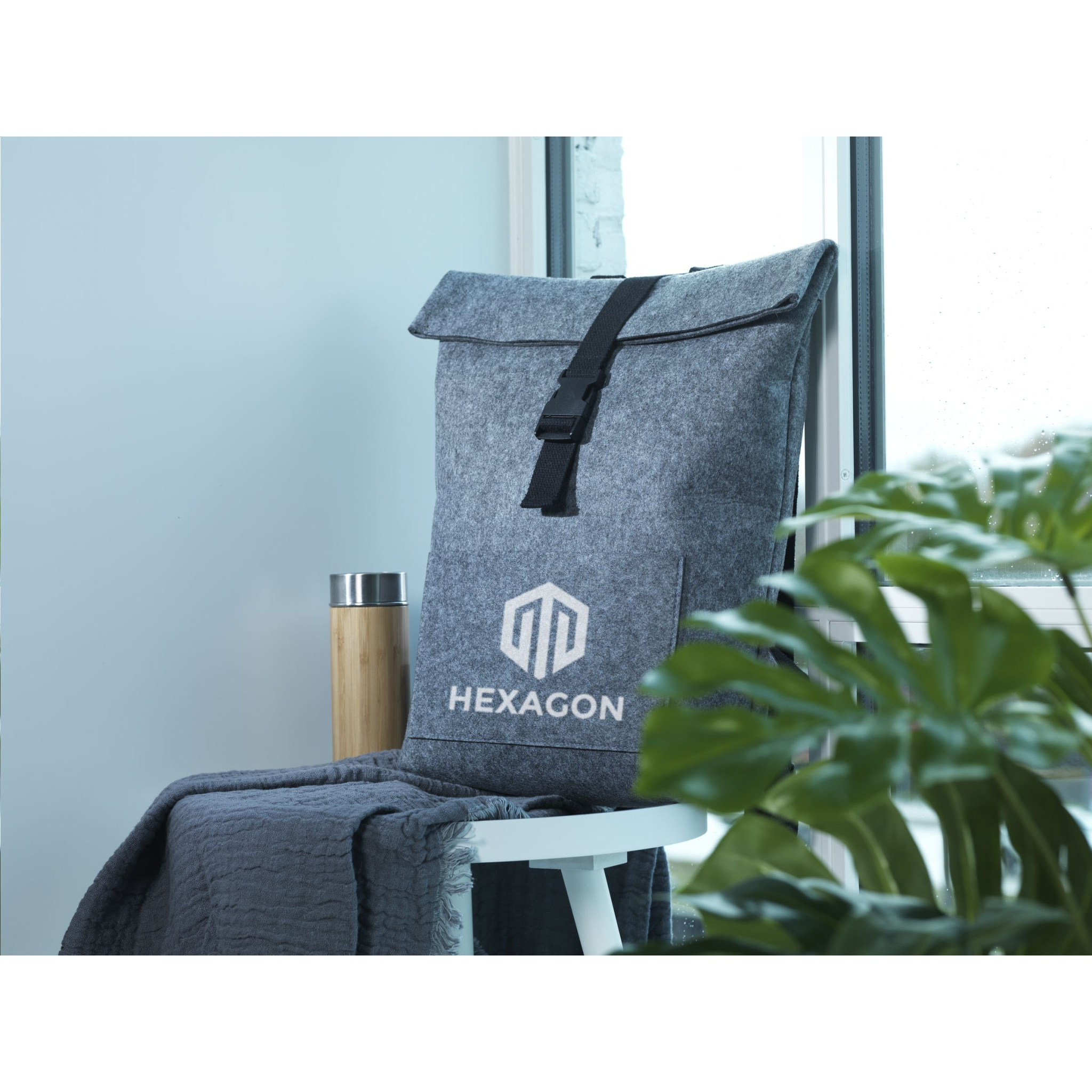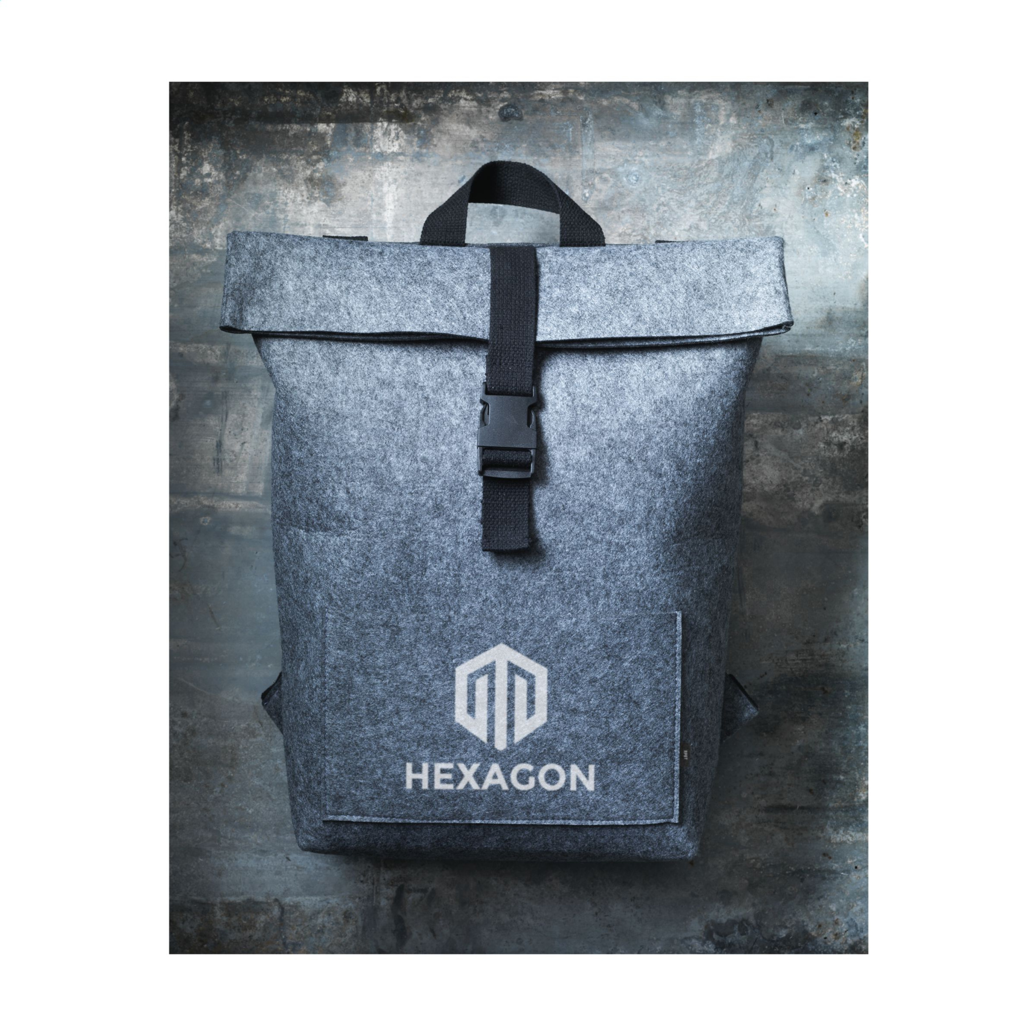 Vau! Vankka, käytännöllinen urbaani "roll-top" -reppu, joka on valmistettu tukevasta RPET-huovasta. Repussa on iso sisätasku ja tasku edessä. Kantohihna, rullasuljin ja kätevä napsautusjärjestelmä yläosassa. GRS-sertifioitu. Kierrätysmateriaali yhteensä: 80 %. Kapasiteetti n. 15 litraa.