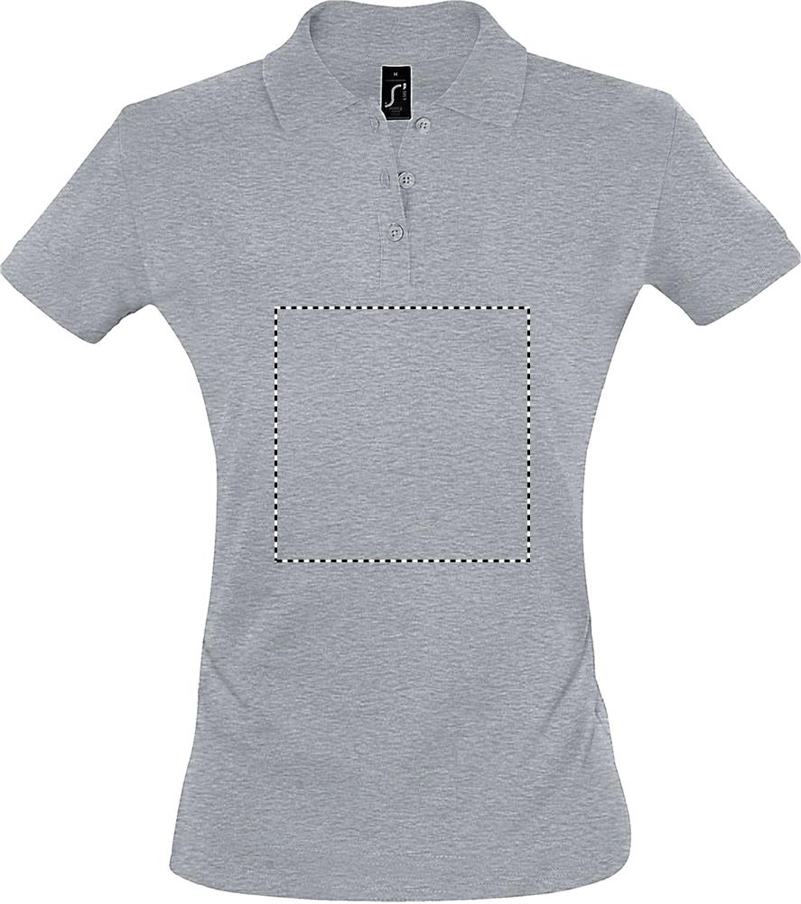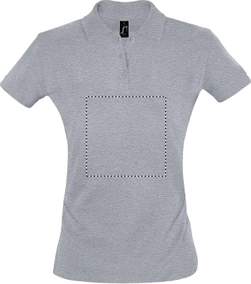 SOL'S PERFECT naisten poolopaita, 1x1 joustinneule kaulus ja hihansuut, vahvistettu kaulasauma, 2 sävyyn sopivaa helmipnappia. Moderni istuvuus sivusaumalla, varanappi sisäpuolella. Kankaan yksityiskohdat: 180g / m² 100% kammattua kehrättyä puuvillaa. OEKO-TEX®. Myydään vain painettuna