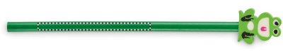 Puinen lyijykynä, jossa on eläimen muotoinen pyyhekumi.