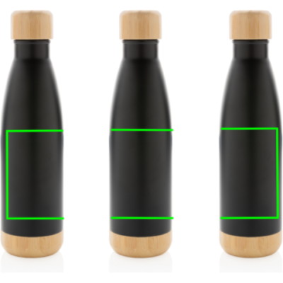 Logo trade mainostuotet tuotekuva: Pullo bambukannella ja -pohjalla ruostumattomasta teräksestä