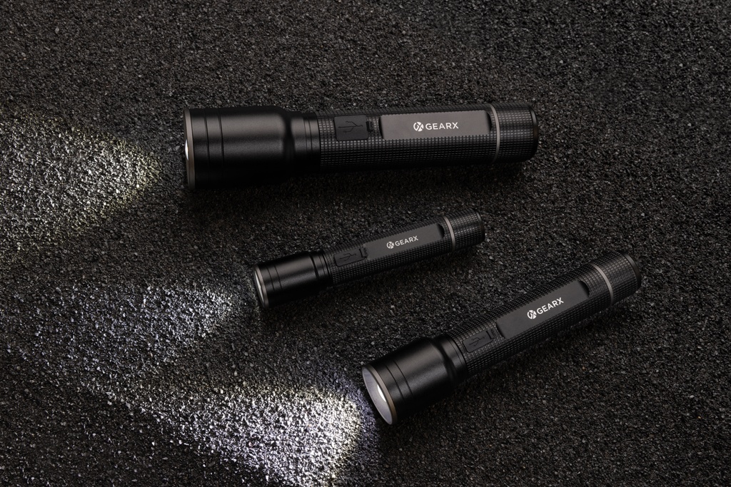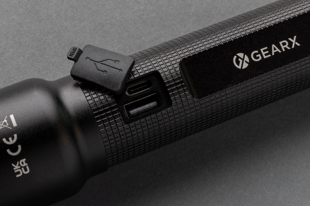 RCS USB uudelleenladattava raskaansarjan taskulamppu, musta