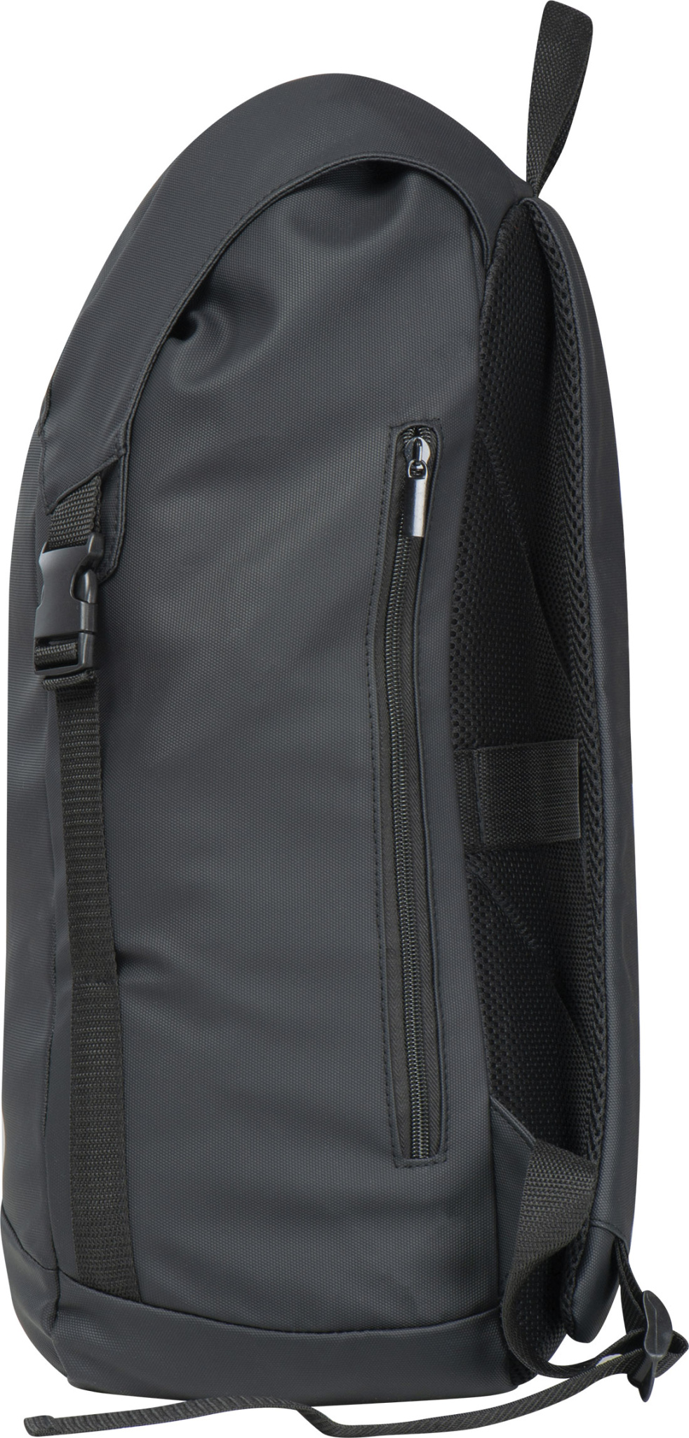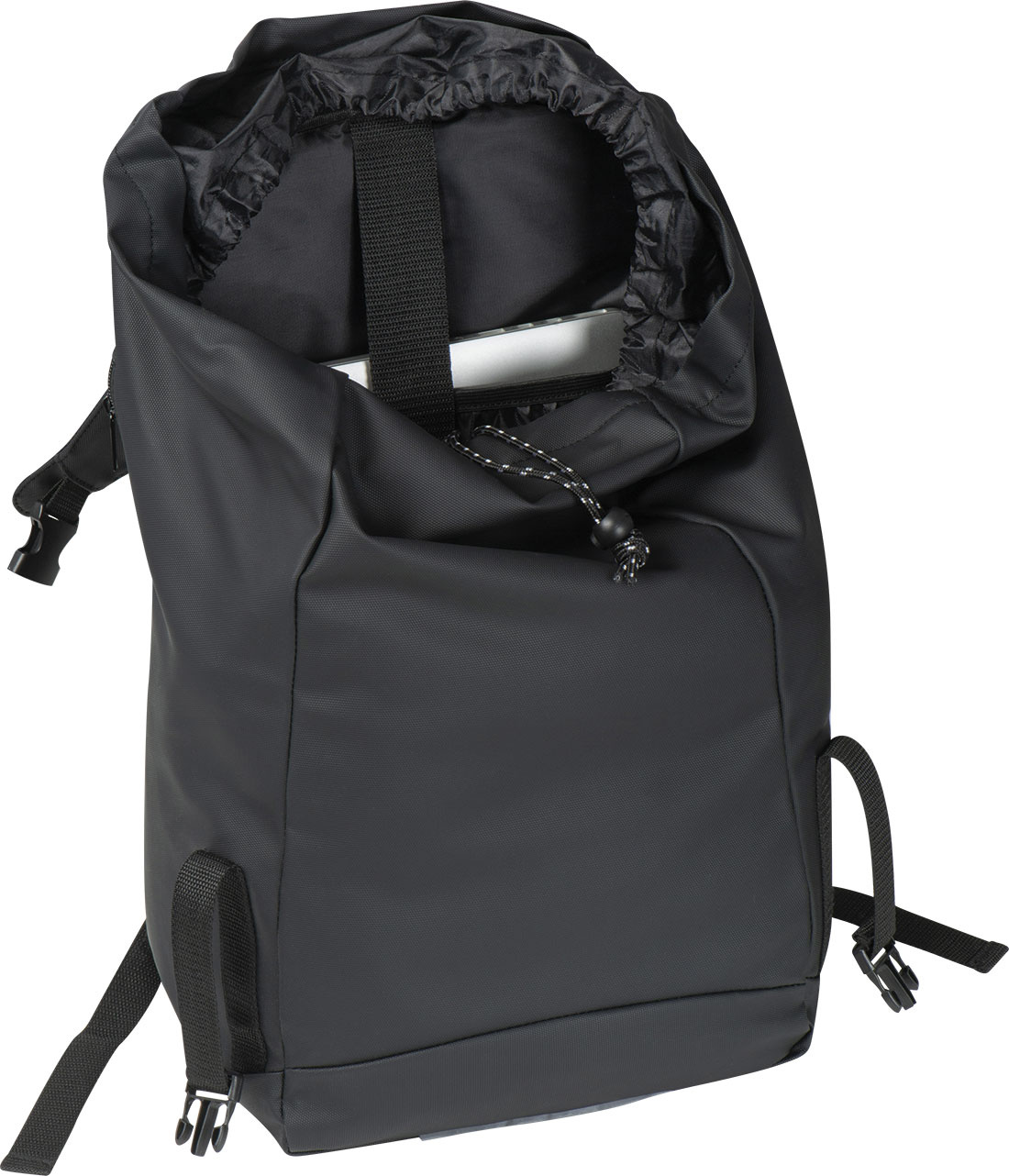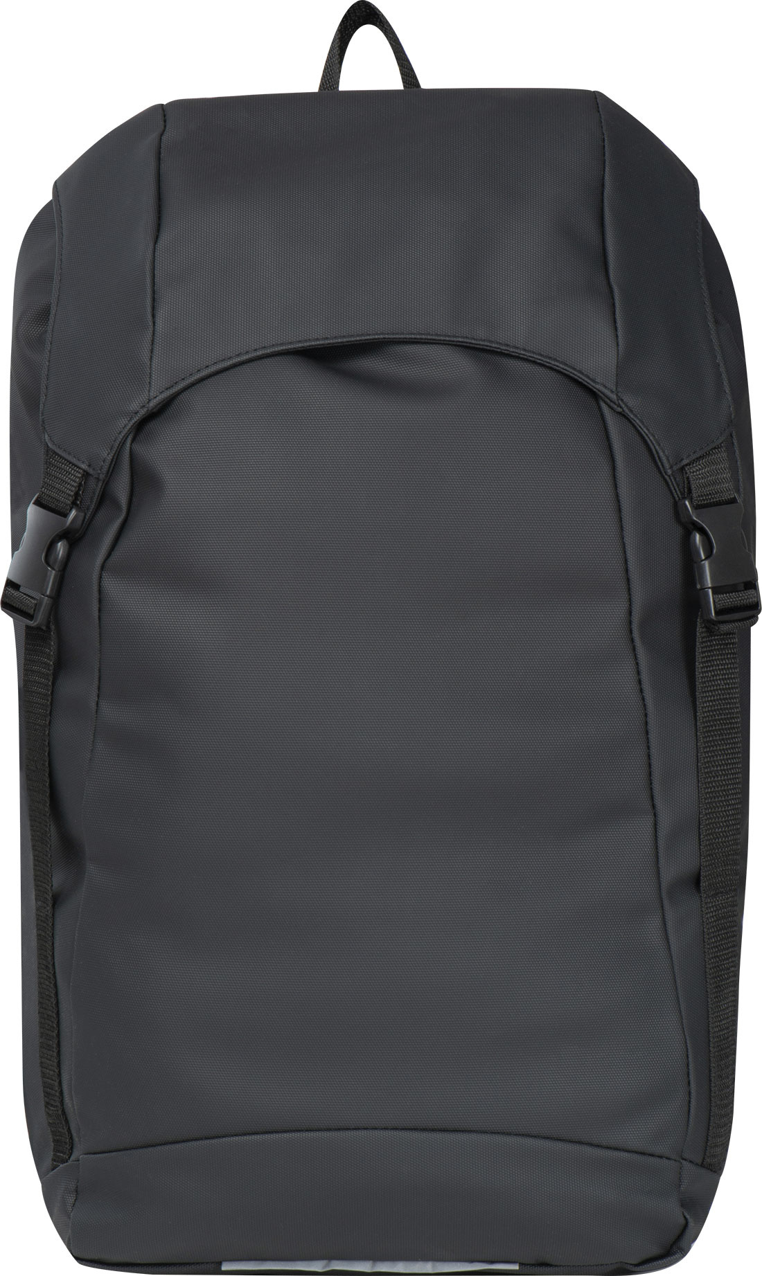 Suuri polyesterireppu vettä hylkivällä PU-pinnoitteella. Siinä on tilava päälokero, jossa on kannettavan tietokoneen suojus ja pehmustettu takaosa, sekä kaksi vetoketjullista taskua oikealla ja vasemmalla ulkosivulla. Siinä on kiristysnyöri ja läppä, joka pitää sisällön kuivana sateen aikana.