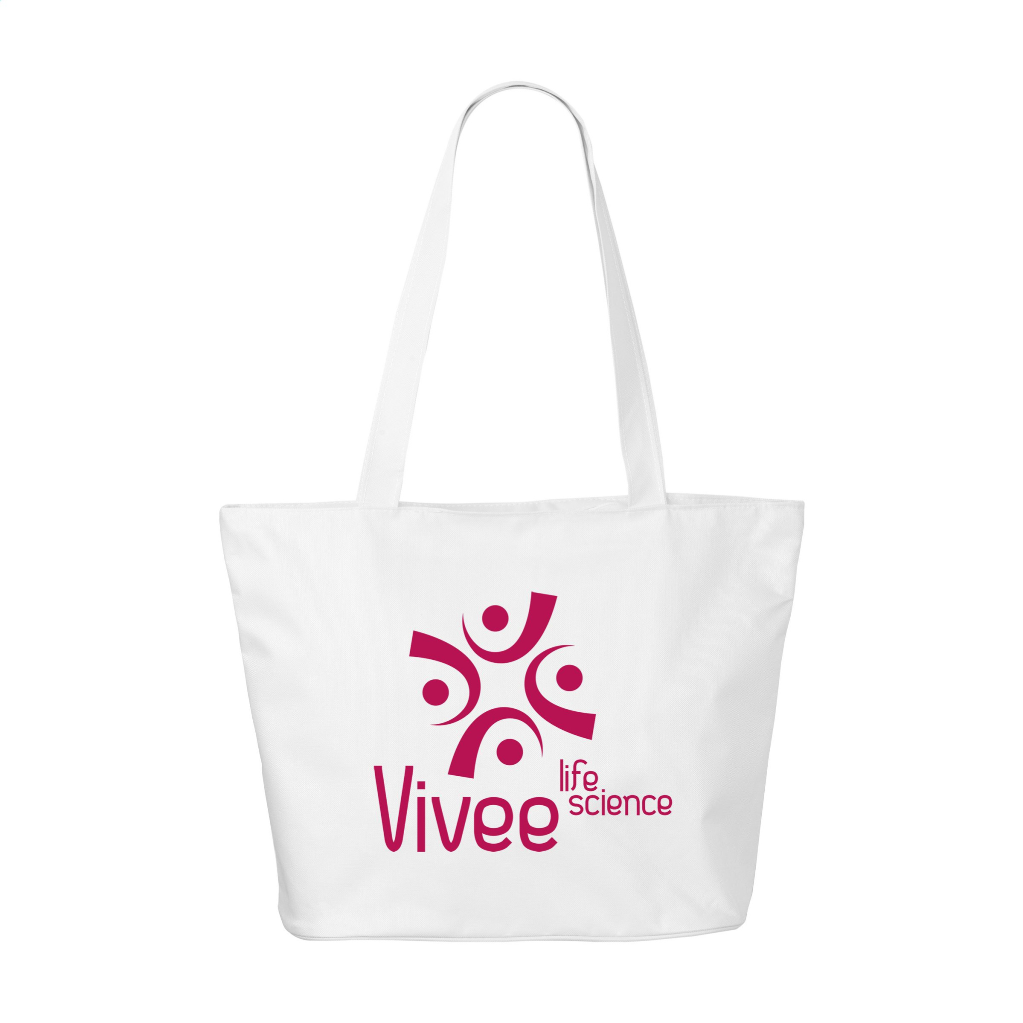 Kaunis, kestävä laukku, joka on valmistettu 600D polyesterista, vahvistettu sisäpuoli, pitkät kahvat, vetoketju ja vetoketjullinen säilytystasku. Leveässä pohjassa on kaunis ja sileä viimeistely pyöreällä putkella. Monikäyttöinen ostoskassi, ostoskassi ja rantakassi.