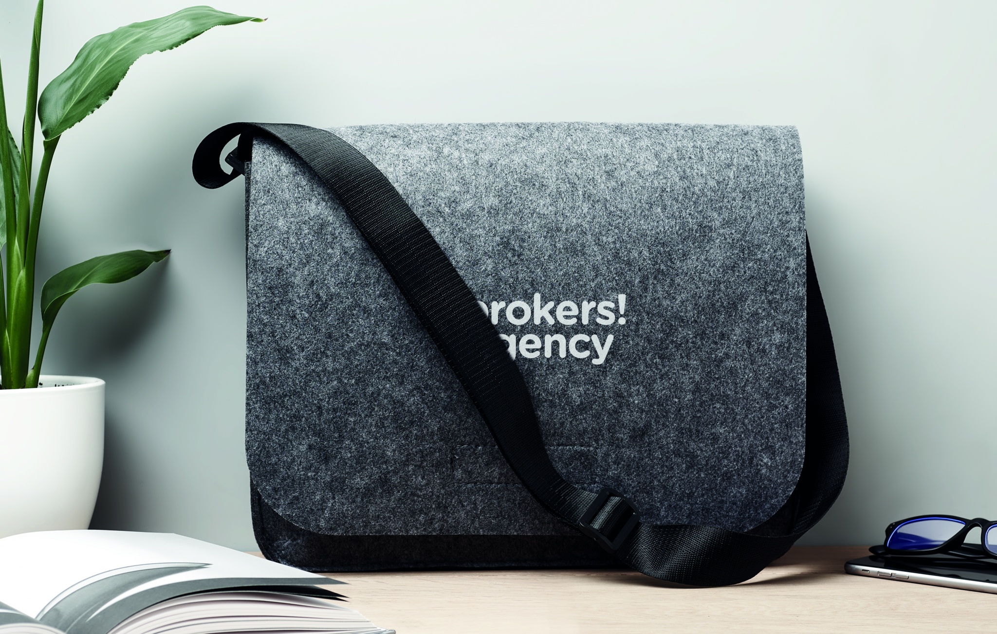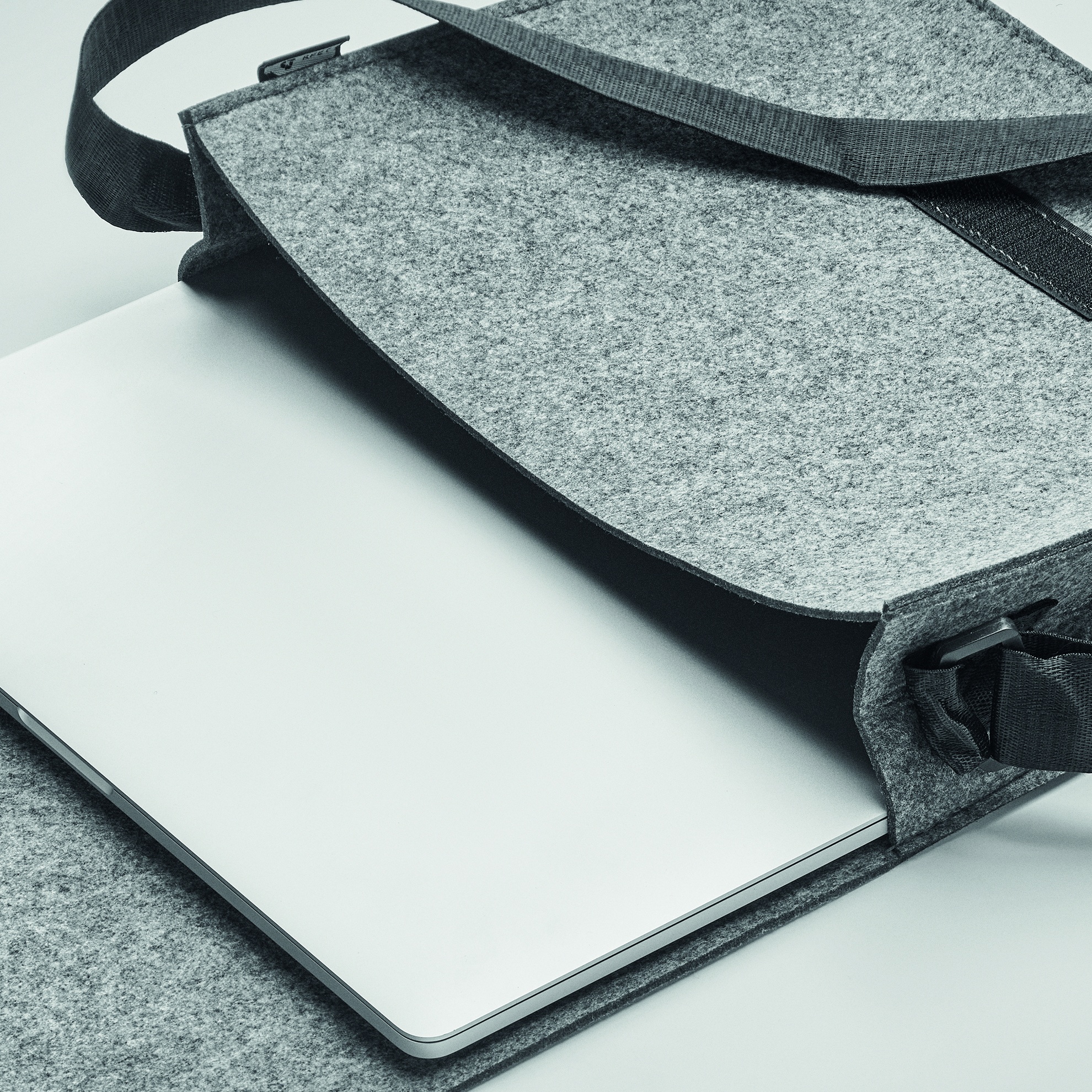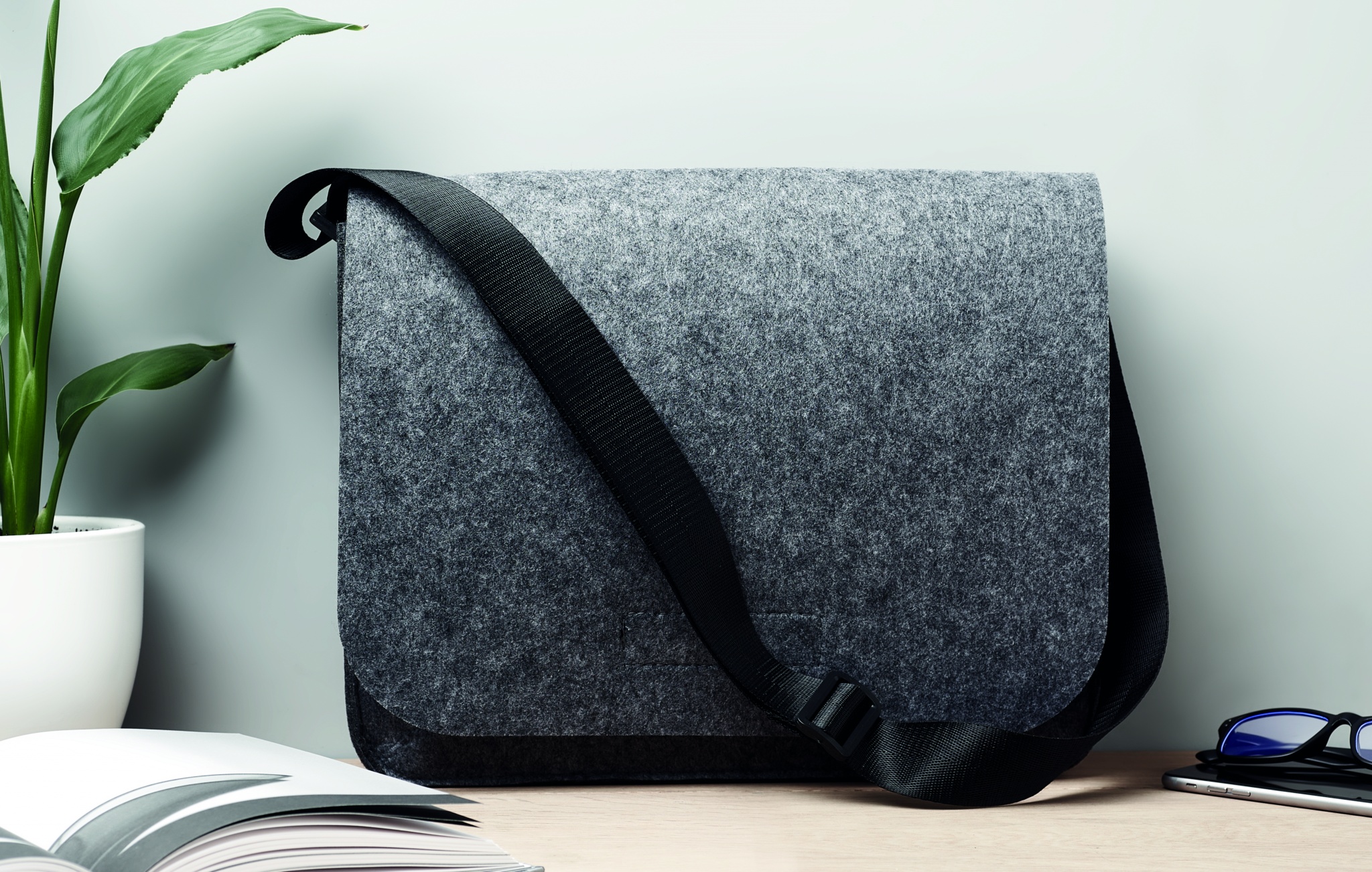RPET huopa olkalaukku, 15 tuuman kannettavalle tietokoneelle ja tarra kiinnityksellä.