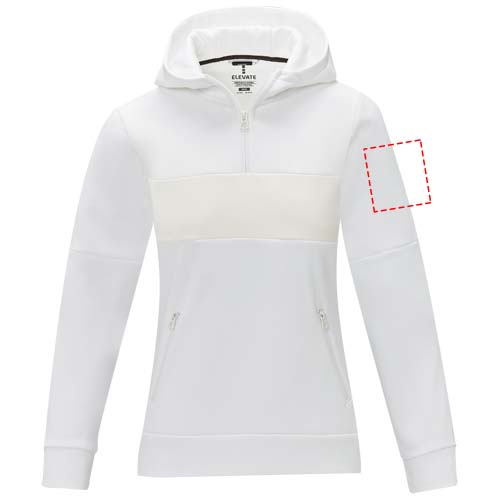 Naisten puolivetoketjullinen anorakkihupullinen Sayan-svetari – ainutlaatuinen yhdistelmä suorituskykyä ja tyyliä. Anorakkimuotoilussa yhdistyvät muoti ja toiminnallisuus, ja siinä on neljännesvetoketju, joka mahdollistaa monipuolisen kerrospukeutumisen. Valmistettu 350 g/m²:n polyesterin ja Sorona®-neuloksen sekoituksesta. Sorona®-kuitu tekee takista ympäristöystävällisen vaihtoehdon lisäämällä siihen kestävän kehityksen mukaisen elementin suorituskyvystä tinkimättä. 280T ripstop-nailonista valmistettu etupaneelin kontrastikangas täydentää takkia kestävyydellään ja tekstuurillaan ja on ihanteellinen paikka esitellä tuotemerkkiäsi. Olitpa sitten lähdössä seikkailemaan luontoon tai vain suorittamassa arkirutiinejasi, hupullisessa Sayan-svetarissa yhdistyvät vaivattomasti muoti ja toiminnallisuus. Tämä svetari myötäilee vartaloa, mikä antaa sille naisellisen ilmeen.