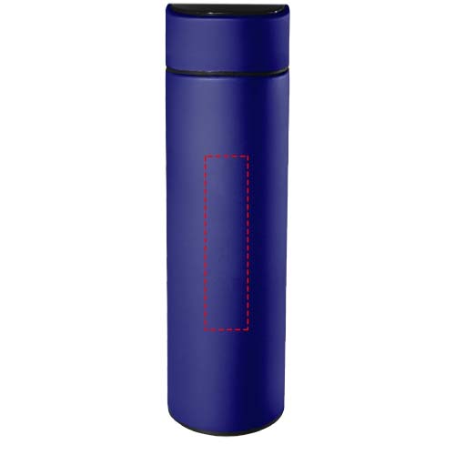 500 ml:n pullo, ruostumatonta terästä, eristetty kaksinkertaisilla seinämillä, antibakteerinen käsittely. Pullossa on lämpötila-anturi. "Touch & Light" -järjestelmän ansiosta juoman lämpötila näytetään pullon korkissa (celsiusasteina). Sopiva niin kuumille kuin kylmille juomille. Toimitetaan lieriönmuotoisessa lahjapaketissa, joka on tehty kierrätetystä paperista. Koko: Ø 47 x 225 mm. Mukana paristot: CR 2450 (3 V). Paristoa ei voi vaihtaa. Pystyy näyttämään lämpötilan jopa 20 000 kertaa.