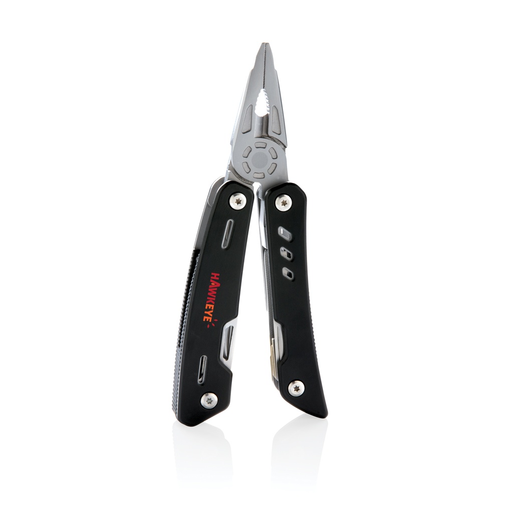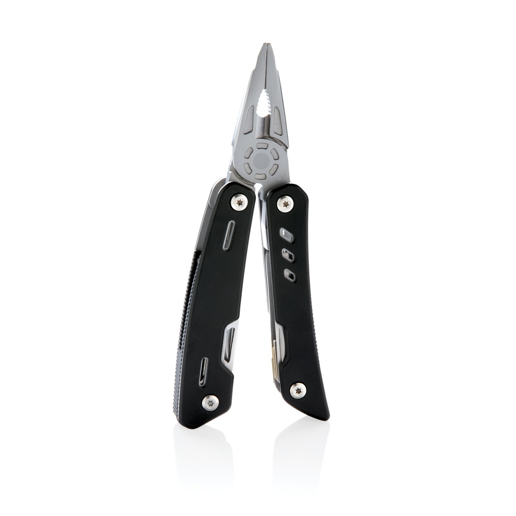 Vahva ja kestävä yleistyökalu, jossa 12 toimintoa. Alumiinikotelo ja ruostumattomat terästyökalut. Työkaluihin kuuluvat: nokkapihdit, tavalliset pihdit, katkaisupihdit, veitsi, ristipäämeisseli, pieni talttapäämeisseli, saha, tölkinavaaja, pullonavaaja, sahalaitaveitsi, kalvin/meisti, viila & suuri talttapäämeisseli. Pakattu lahjapakkaukseen.