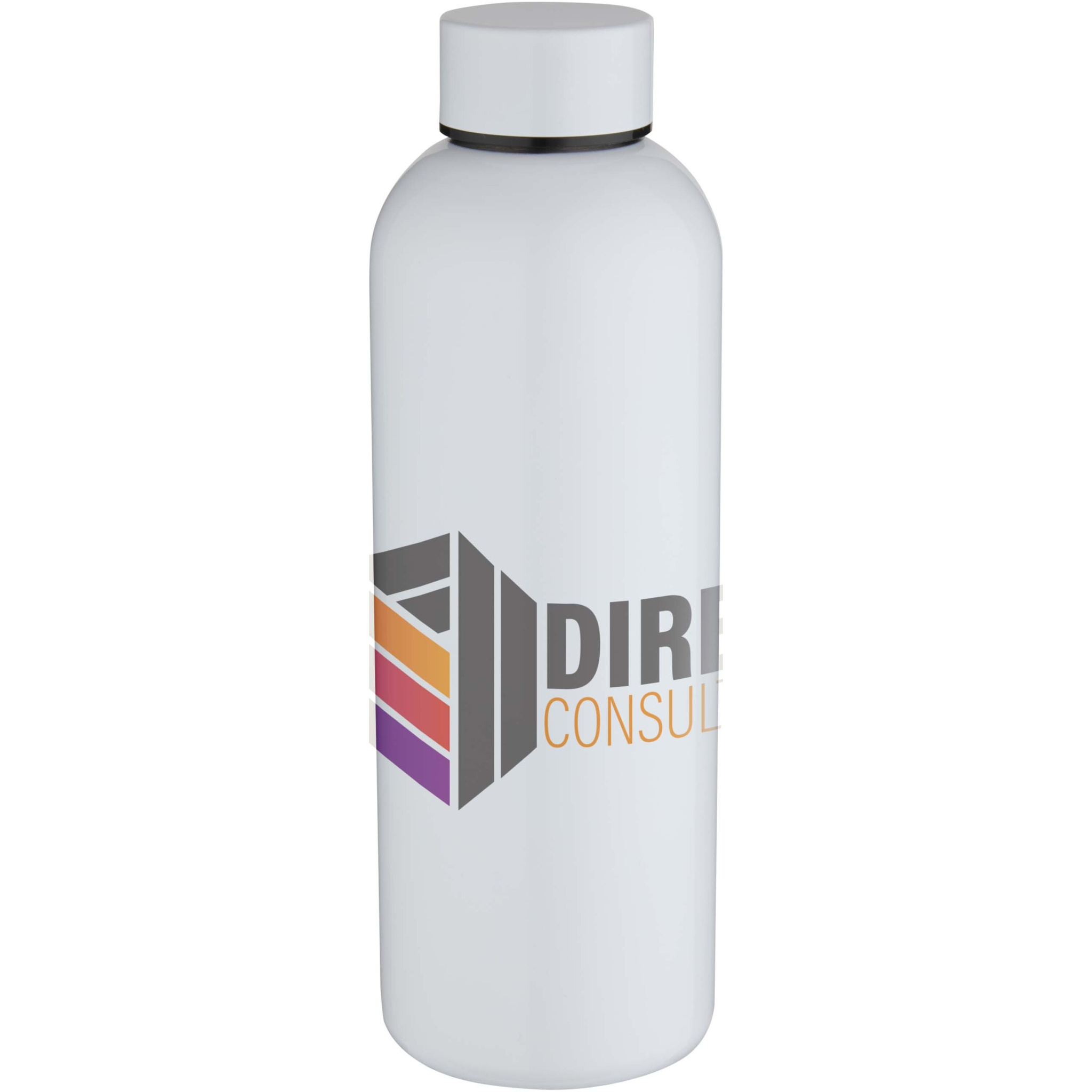 RCS-sertifioidusta kierrätetystä ruostumattomasta teräksestä valmistetuttu Spring vesipullo. Yksiseinäisessä pullossa on kierrekorkki ja ulkopinnassa erityinen pinnoite, joka mahdollistaa sublimaatiopainatuksen. Kevyt ha kestävä pullo sopii erinomaisesti jokapäiväiseen nesteytykseen. Kiiltävä pinta. Tilavuus: 750 ml.