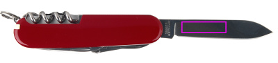ominaisuudet: 1. iso terä 2. kynsiviila kynsi: 3 - laite kynsien puhdistamiseen 4. korkkiruuvi 5. tölkinavaaja jossa: 6. - pieni ruuvimeisseli 7. avaajakorkit: 8. - ruuvimeisseli 9. - langanpoistaja 10 vartaat 11. avaimenperä 12. pinsetit 13. hammastikku.