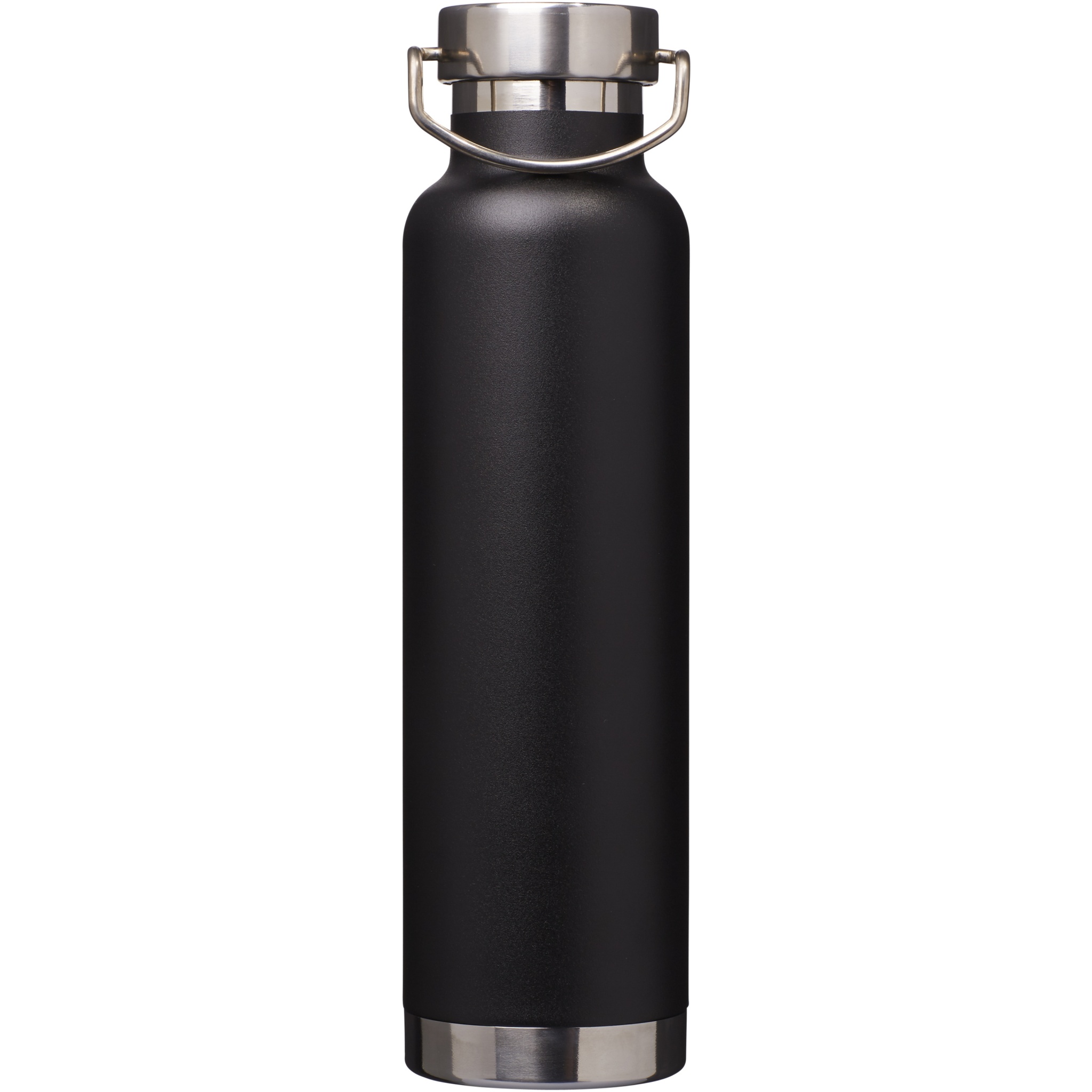 Kestävää ruostumatonta terästä. Kuparieristetty tyhjiörakenne, jonka ansiosta juoma pysyy kylmänä 48 tuntia ja vähintään 12 tuntia kuumana. Rakenne estää myös nesteen tiivistymisen pullon ulkopuolelle. Trendikäs, kestävä jauhemaalaus. Ruostumattomasta teräksestä valmistettu ruuvattava kierrekorkki ja kestävä käsilenkki. Leveä suuosa helppottaa täyttöä ja kaatamista. Täydellinen jääpaloille. Tilavuus 650 ml. Avenue-lahjapakkaus.