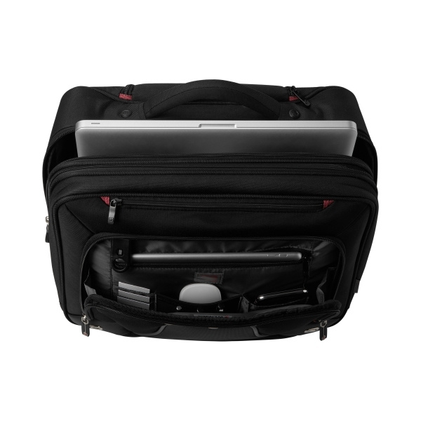Täydellinen tien päällä oleville työmatkailijoille. Tämä laajennettava rullaava yrityslaukku mahdollistaa kannettavan tietokoneen, tabletin, asiakirjojen ja muiden kuljettamisen helposti. Pehmustetut lokerot suojaavat jopa 16" / 41 cm:n kannettavaa tietokonetta ja iPadia, 10" / 25 cm:n tabletti tai eReader, laajenee 2” / 5 cm, kun tarvitaan lisää tallennustilaa, Essentials-järjestäjä, Quik Pocket tarjoaa helpon pääsyn olennaiseen, Tiedostonjakaja erottaa ja tallentaa asiakirjat, kansiot ja paljon muuta, Pass-Thru vaunun hihna liukuu kahvan yli pyörälliset matkatavarat matkustamisen helpottamiseksi, Comfort-grip-teleskooppivaunun kahva, Easy-liukuvat pyörät