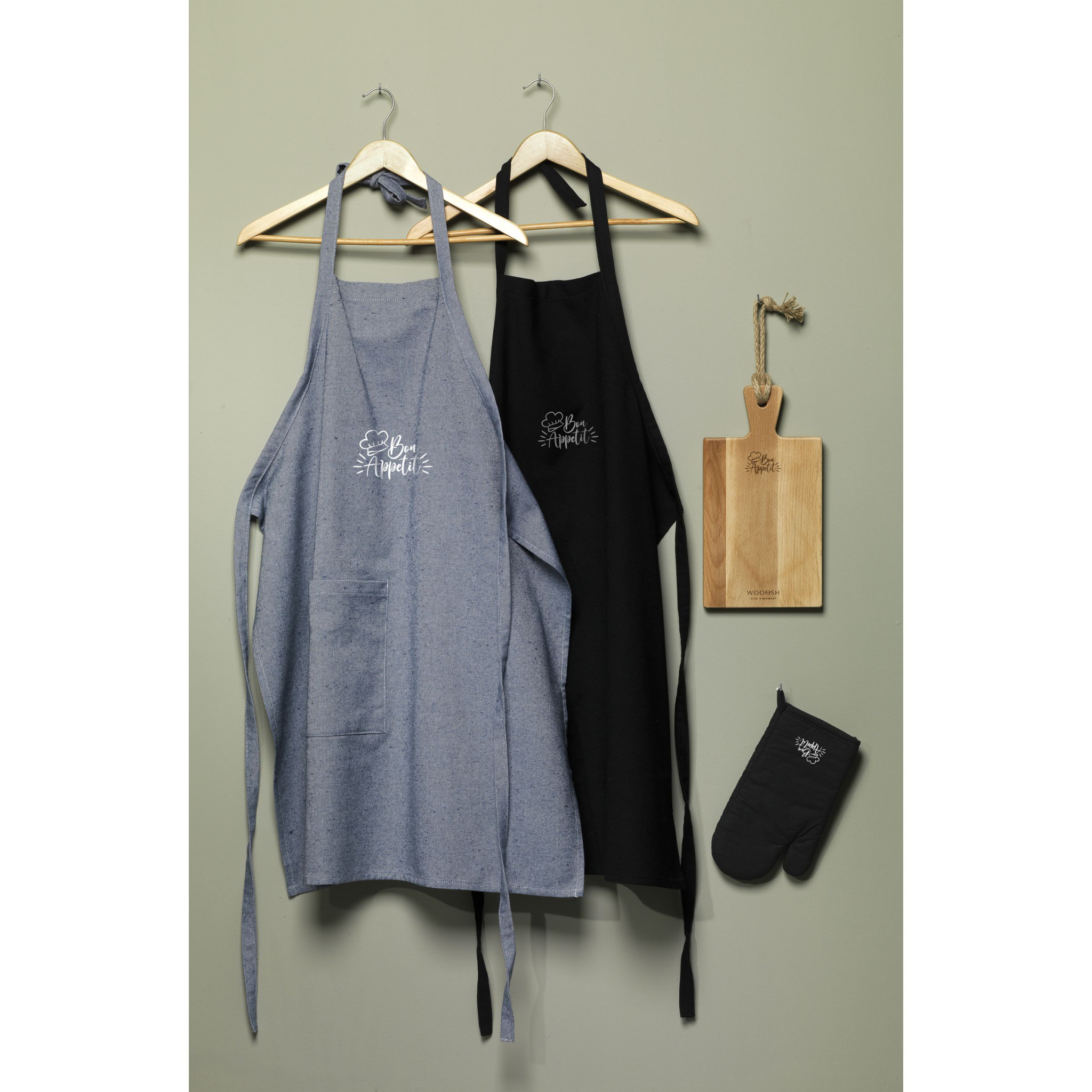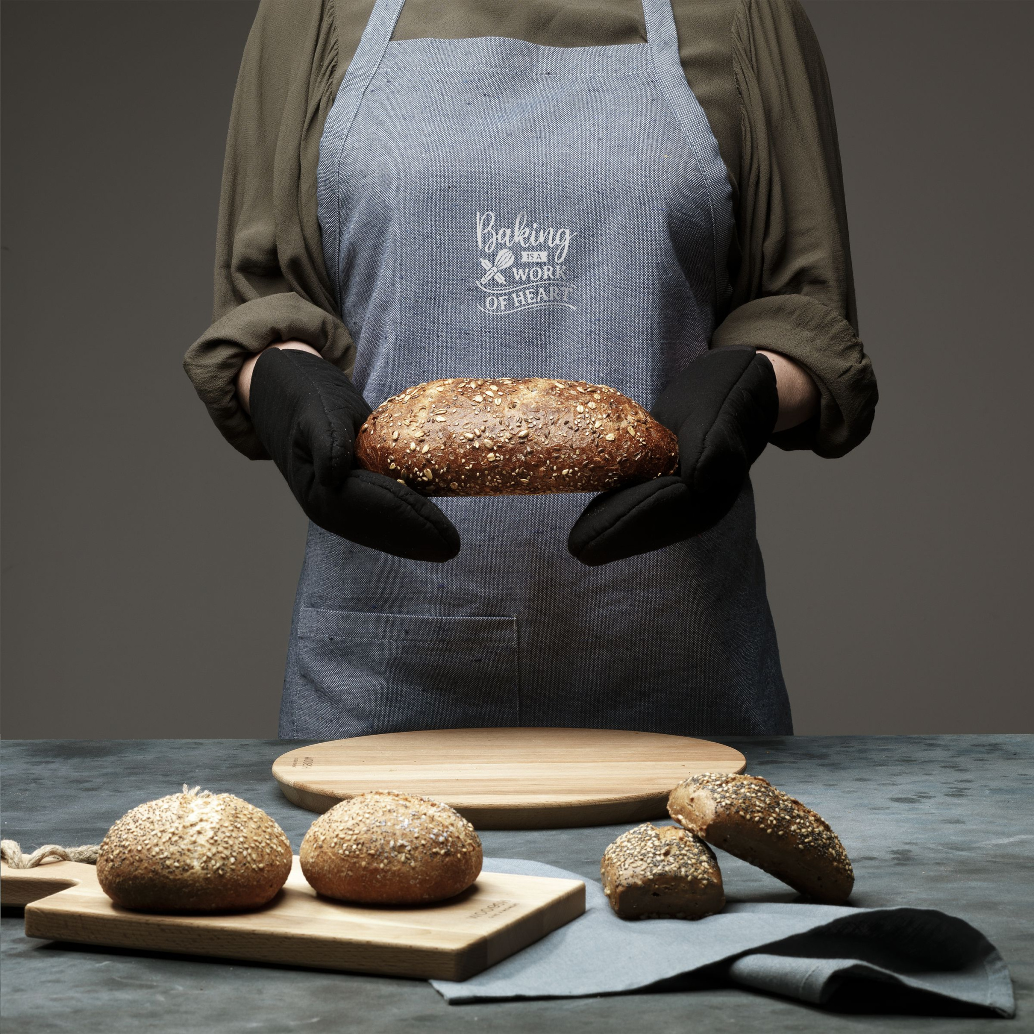 Esiliina paikkataskulla hollantilaiselta Wolkat-merkiltä. Valmistettu vanhoista ja käytöstä poistetuista vaatteista, kuluttajien lahjoittamat Hollannissa. Wolkatilla he hallitsevat koko prosessia keräyksestä, lajittelusta, kierrätyksestä, kehräyksestä ja kutomisesta - kaikki saman katon alla. Koko tekstiilien kierrätysprosessin aikana ei käytetä vettä, maalia tai kemikaaleja. Wolkat silppuaa ja kuiduttaa nämä tekstiilit puhtaiksi kuiduiksi, jotka sitten lähetetään omaan kehräämään, joka sijaitsee Marokossa. Tässä kehrässä kehrätään eripaksuisia ja -laatuisia lankoja. Tästä valmistetaan tuotteita, kuten tämä esiliina, joka koostuu 52 % kierrätetyistä tekstiileistä ja 48 % RPET:stä.