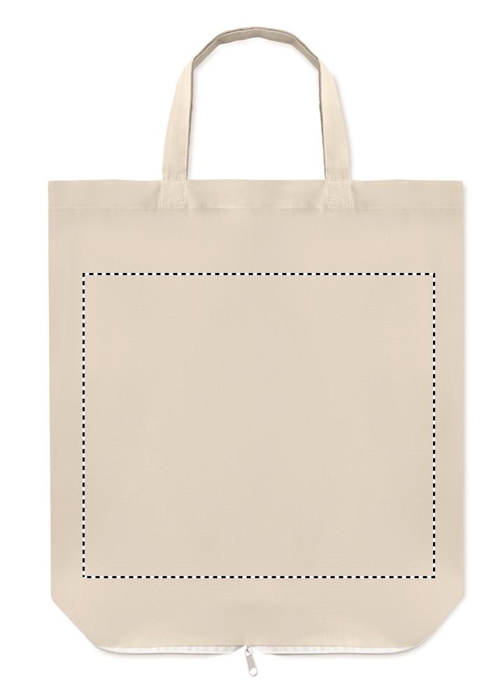 Sulankstomas medvilninis pirkinių krepšys trumpomis rankenomis. 100 gr/m². Tiekiamas išlankstytas.