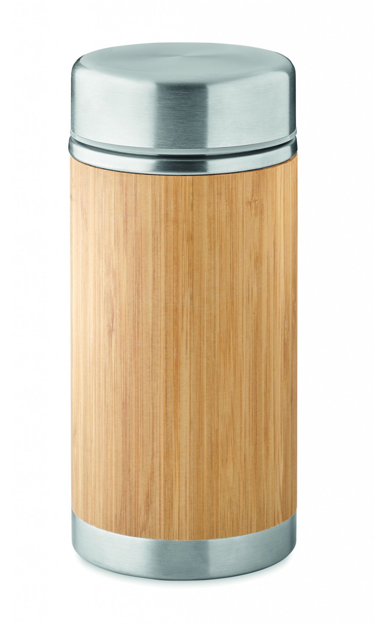 Dvigubos sienelės nerūdijančio plieno izoliuotas maisto indas su užsukamu bambuko dangteliu. Talpa: 600 ml. Bambukas yra natūralus produktas, gali šiek tiek skirtis kiekvieno gaminio spalva ir dydis, o tai gali turėti įtakos galutiniam dekoravimo rezultatui.