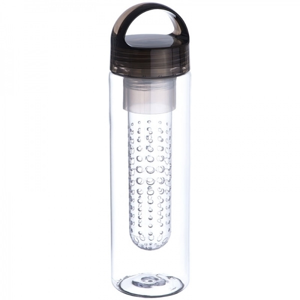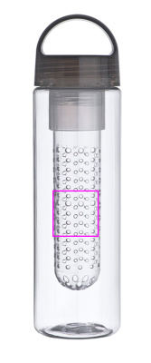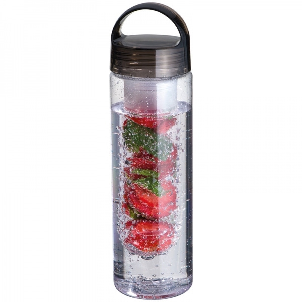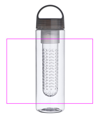 Plastikinis geriamasis buteliukas su užpilu (pvz.) vaisiams ir 650 ml talpos. Ant butelio atspausdinsime Jūsų logotipą.