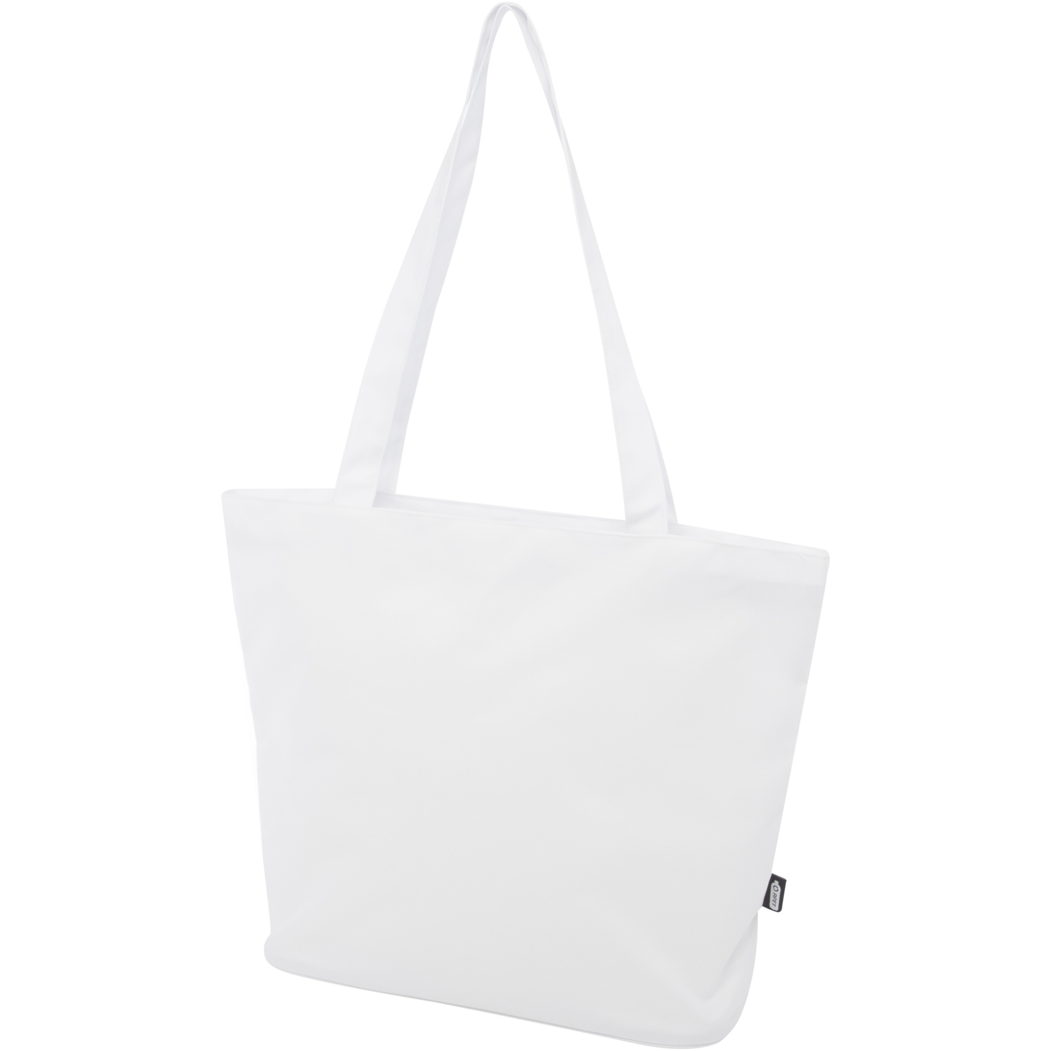 Pagaminta iš vandeniui atsparaus 600D RPET, Panama GRS perdirbtas užtrauktuku užsegamas krepšys yra puikus ir tvarus daugiafunkcis krepšys, skirtas vykti į renginį, paplūdimį ar apsipirkti. Jame yra pagrindinis skyrius su užtrauktuku ir pakankamai didelė kišenė su užtrauktuku, kad tilptų jūsų telefonas ir kiti vertingi daiktai. Rankenos yra 34 cm ilgio, todėl krepšį lengva neštis ant peties. Atsparumas iki 10 kg svorio. Be PVC.