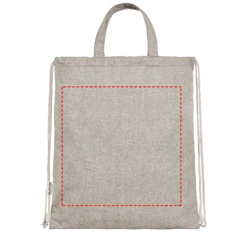 Maišelis su raišteliu, pagamintas iš 150 g/m² perdirbto medvilnės poliesterio mišinio. Didelis pagrindinis skyrius su natūralios spalvos medvilniniu raišteliu. Perdirbta medvilnė gaminama iš iki vartojimo atliekų, susidarančių tekstilės gamyklose pjovimo proceso metu. Panašios spalvos sumaišomos, todėl nereikia papildomo dažymo. Dėl perdirbtos medvilnės pobūdžio gali būti labai nedidelių spalvų skirtumų. Tai aiškiai suteikia autentiškesnę išvaizdą. Kiekvienoje kuprinėje taip pat yra Aware™ žymeklis. Ši naujoviška funkcija leidžia vartotojams per QR kodą atsekti savo prekės kilmę ir kelionę, padidindama tiekimo grandinės skaidrumą ir skatindama stipresnį ryšį tarp produkto ir jo gamybos proceso. Atsparumas iki 5 kg svorio. Rankenos ilgis: 14 cm.