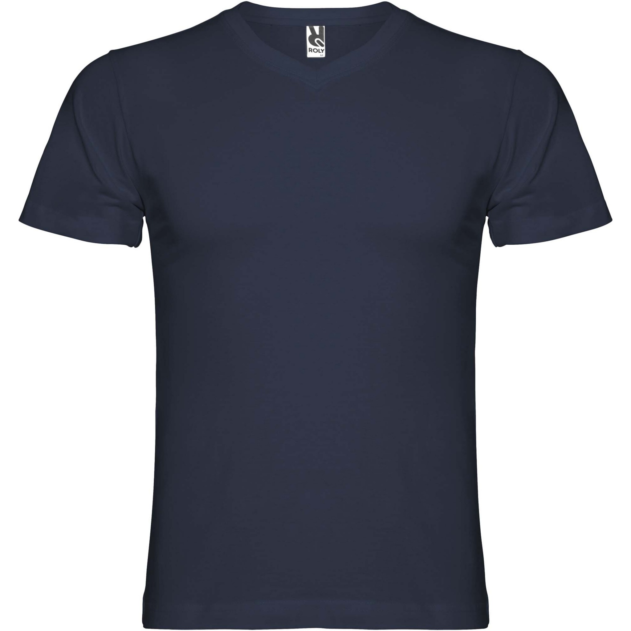 Vamzdiniai marškinėliai trumpomis rankovėmis su 2 sluoksnių V formos iškirpte. Sustiprintos dengtos apykaklės ir pečių siūlės. Nuimama etiketė. Modelis yra 190 cm ūgio ir dėvi L dydį.
