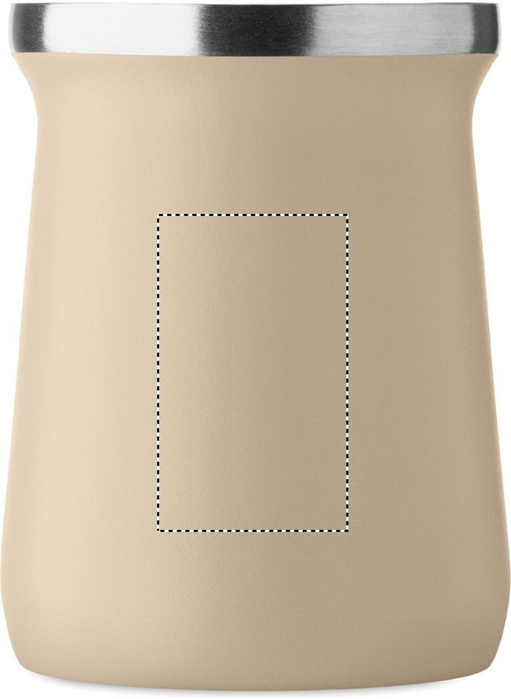 Dvigubos sienelės Yerba mate puodelis iš perdirbto nerūdijančio plieno (90 % perdirbto nerūdijančio plieno ir 10 % nerūdijančio plieno). Pridedamas nerūdijančio plieno šiaudelis ir valymo šepetėlis. Talpa: 240 ml.