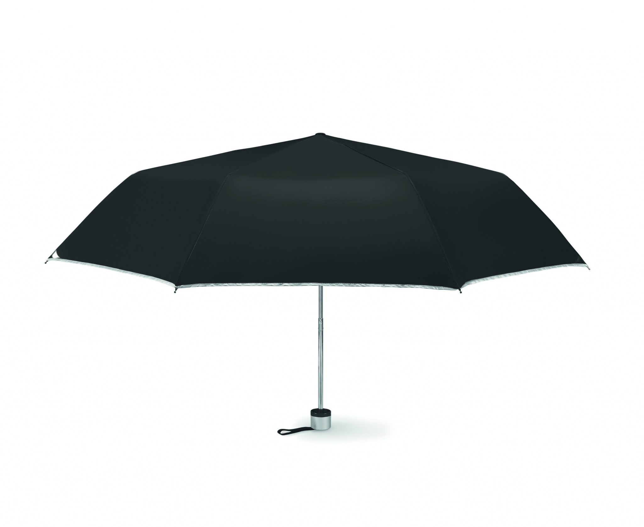 21 collas manuāli atvērts lietussargs no 190T poliestera ar cinkotu metāla kātu un galiem. Melnas pārklājuma metāla ribas. Paneļi krāsā ar sudraba pārklājumu aizmugurē. Plastmasas rokturis krāsā ar sudraba apmali un melnu rokas siksnu. 3 sadaļas salokāmas. Iekļauts atbilstošs maisiņš ar sudraba apdari. Manuāla aizvēršana.