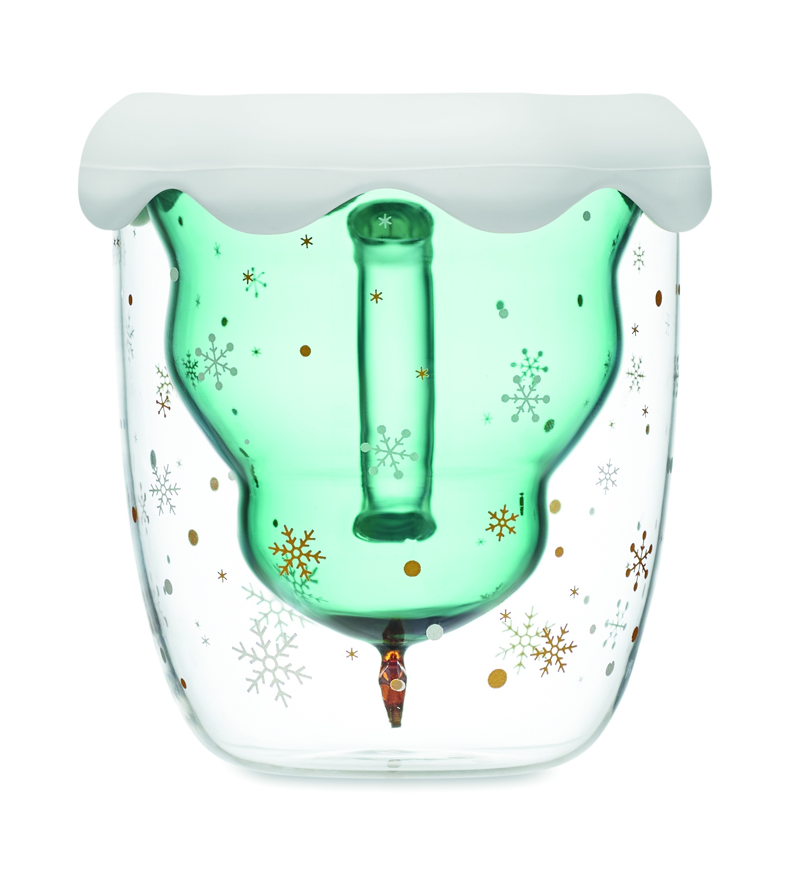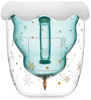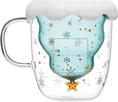 Divsienu borsilikāta krūze ar sezonālu dizainu un silikona vāku un paliktni. Tilpums: 250 ml.