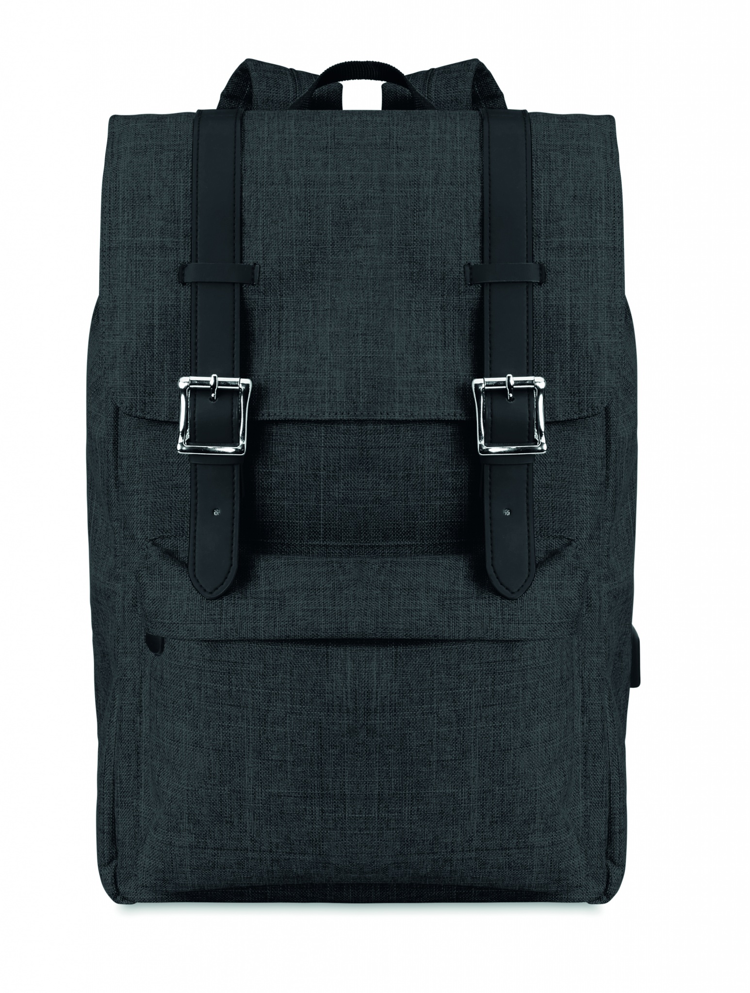 Klēpjdatora mugursoma no 600D 2 toņu poliestera ar polsterētu plecu siksnu, ieskaitot vienu galveno iekšējo nodalījumu 15 collu klēpjdatoram un USB uzlādes kabeli. Iekļauts magnētiskās pogas aizdare un viens priekšējais nodalījums ar rāvējslēdzēju.