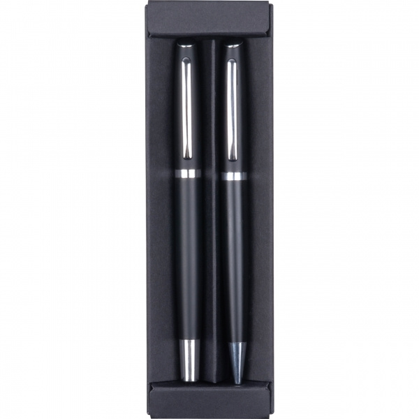 Rakstīšanas komplekts izgatavots no pārstrādāta alumīnija, kas sastāv no lodīšu pildspalvas un rullīšu bumbiņas. Gludais dizains un zilā krāsā rakstīts pusgēla uzpildījums (0,7 mm) nodrošina vienmērīgu rakstīšanas pieredzi.