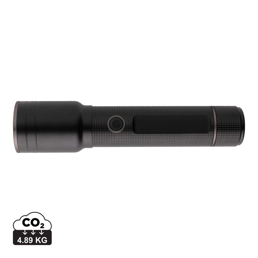RCS pārstrādāta alumīnija USB uzlādējams lieljaudas kabatas lukturītis, melns