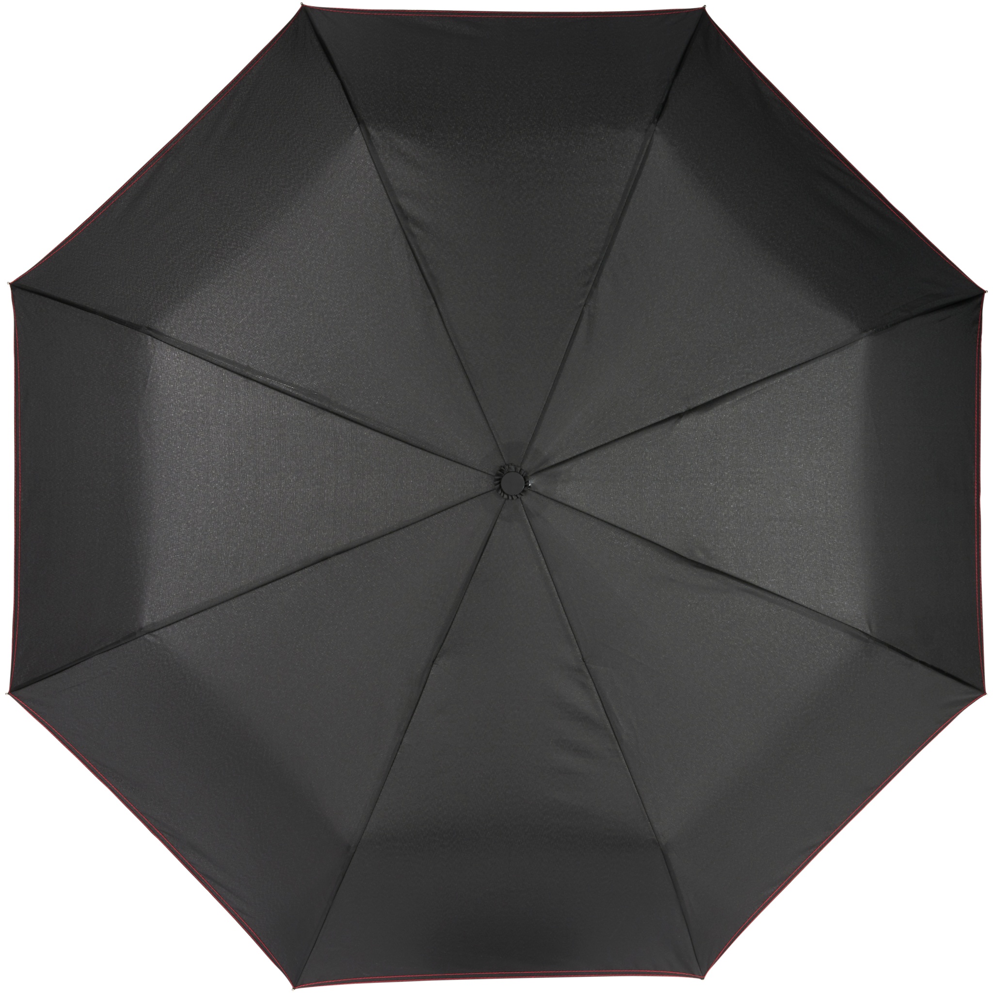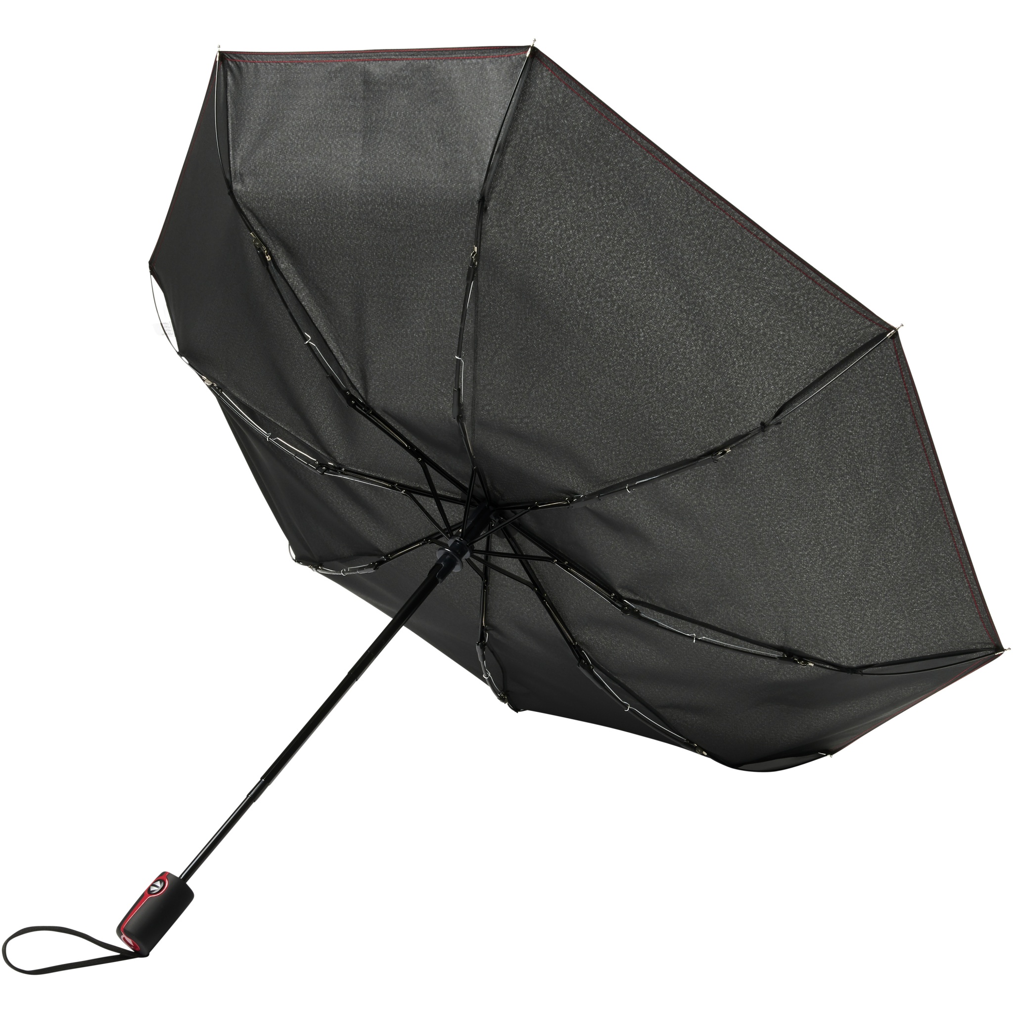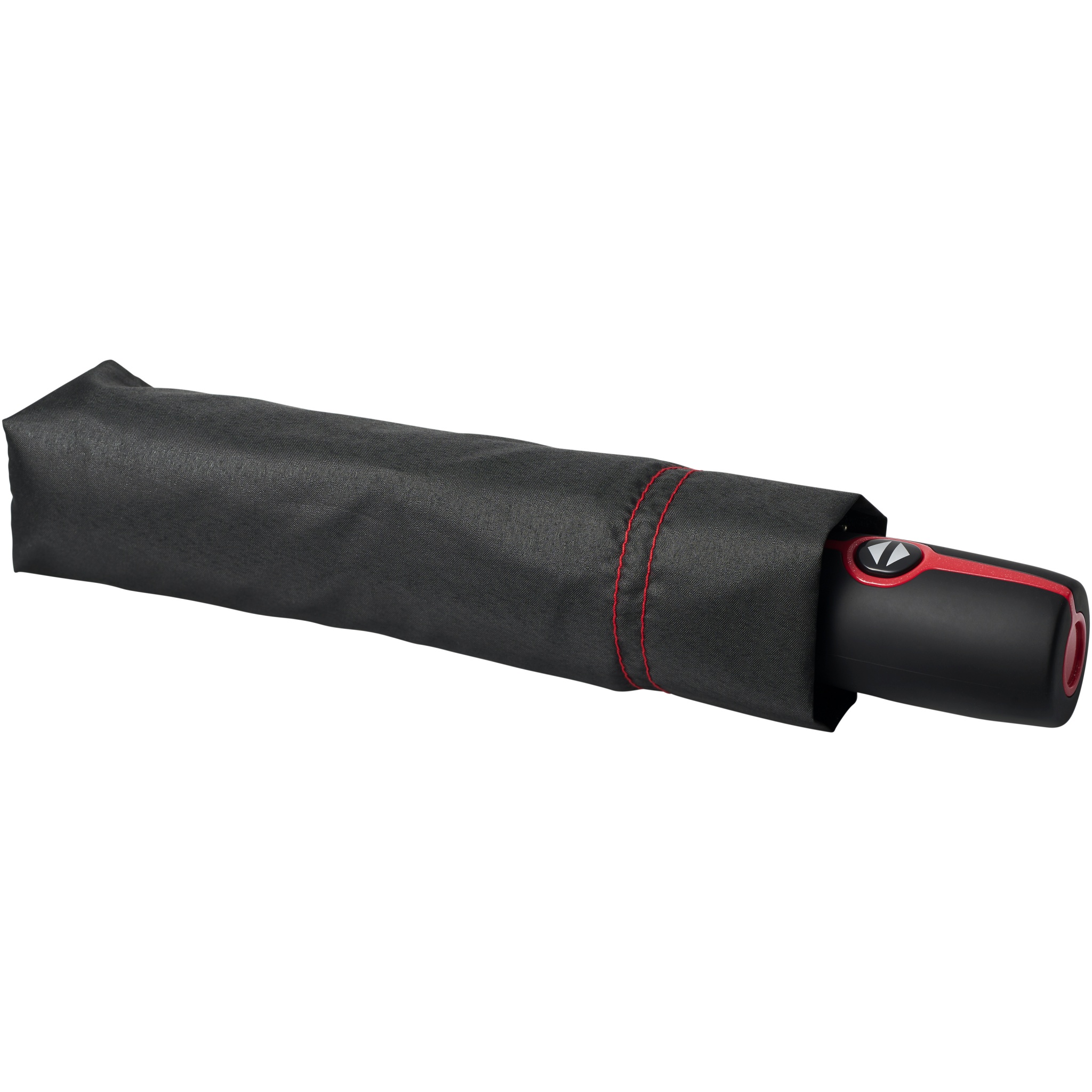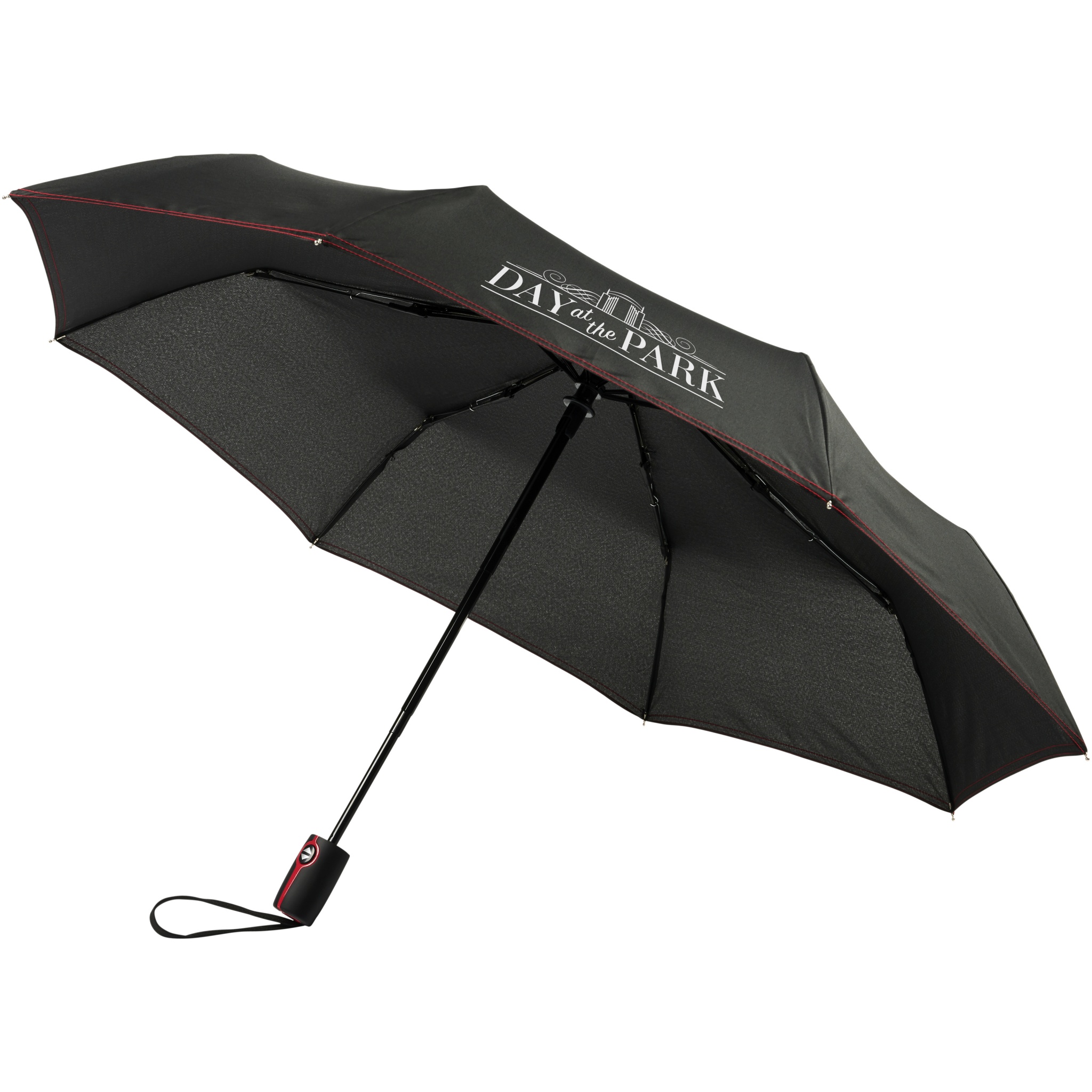 Автоматически открывающийся и закрывающийся складной зонт с куполом из эпонж полиэстера. Прочный металлический стержень, высококачественная рама со спицами из стекловолокна, обеспечивающая максимальную гибкость в ветреную погоду. Поставляется с чехлом и может легко поместиться в сумку или рюкзак для удобного ношения. На ручке с мягким матовым покрытием присутствуют цветные элементы, а части купола и чехла прошиты. Большая зона для декорирования на каждо.