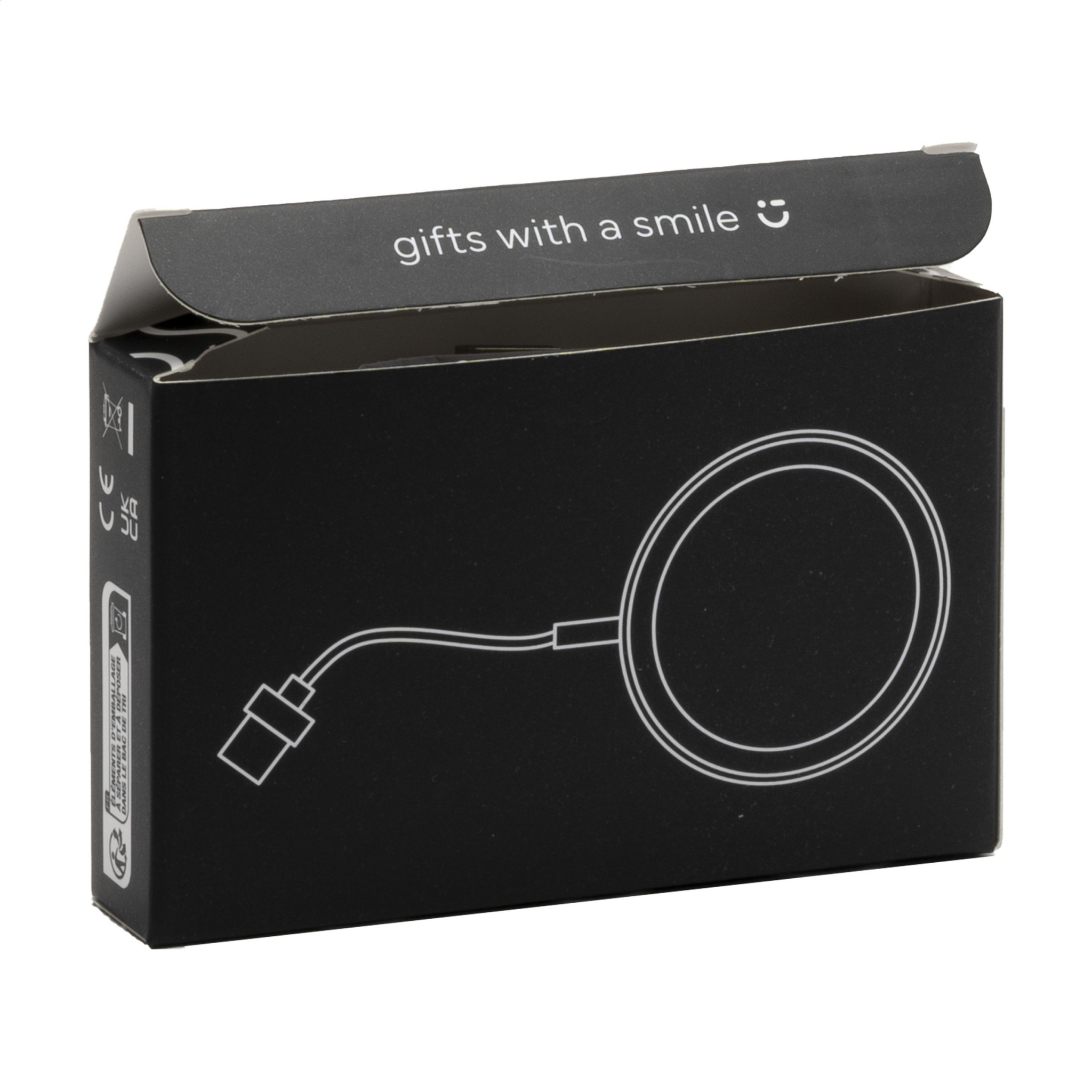 Магнитное зарядное устройство мощностью 10 Вт с корпусом из переработанного АБС-пластика. С помощью этого зарядного устройства вы можете заряжать свой смартфон по беспроводной сети, а благодаря намагниченной базе ваш телефон может оставаться подключенным к нему, даже когда вы пользуетесь телефоном. Это зарядное устройство идеально подходит, если вы хотите заряжать свое мобильное устройство во время звонка или просмотра видео. Встроенные магниты (11 высококачественных термостойких N52H) в этом зарядном устройстве идеально выровнены и всегда гарантируют, что ваш телефон будет расположен правильно для оптимальной зарядки. Также в комплект входит дополнительное магнитное металлическое кольцо для поддержки зарядки немагнитных беспроводных перезаряжаемых смартфонов. Этот продукт совместим с iPhone 12 и выше. Выход: постоянный ток 9 В/1,1 А (15 Вт) для быстрой зарядки. В комплект входят кабель (USB-A и Type-C) и руководство пользователя. Как продукт, так и его аксессуары не содержат ПВХ. Каждый предмет поставляется в индивидуальной коричневой картонной коробке.