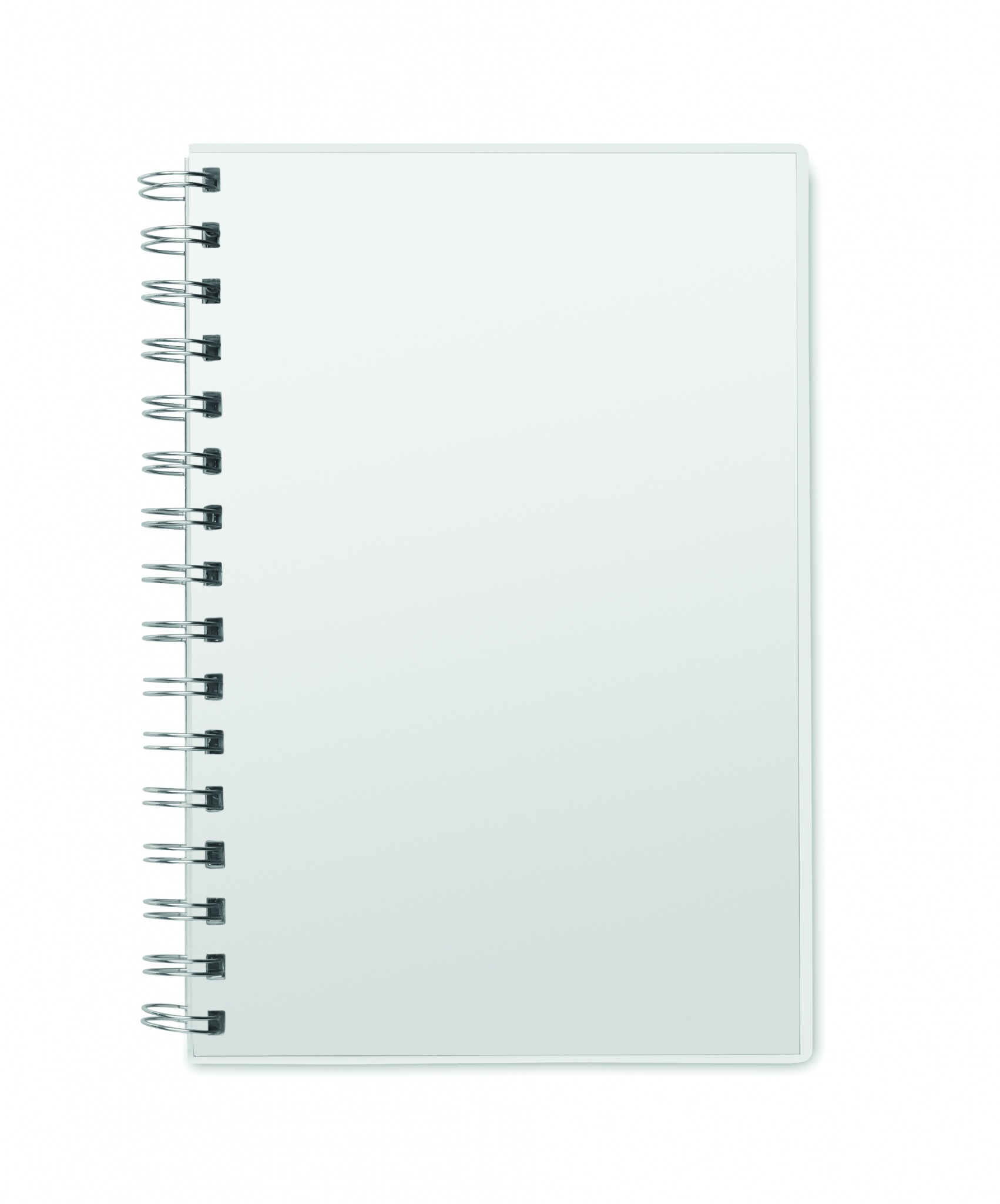 Блокнот формата A5 на спирали в обложке из переработанного пластика (RPET). 80 линованных страниц.