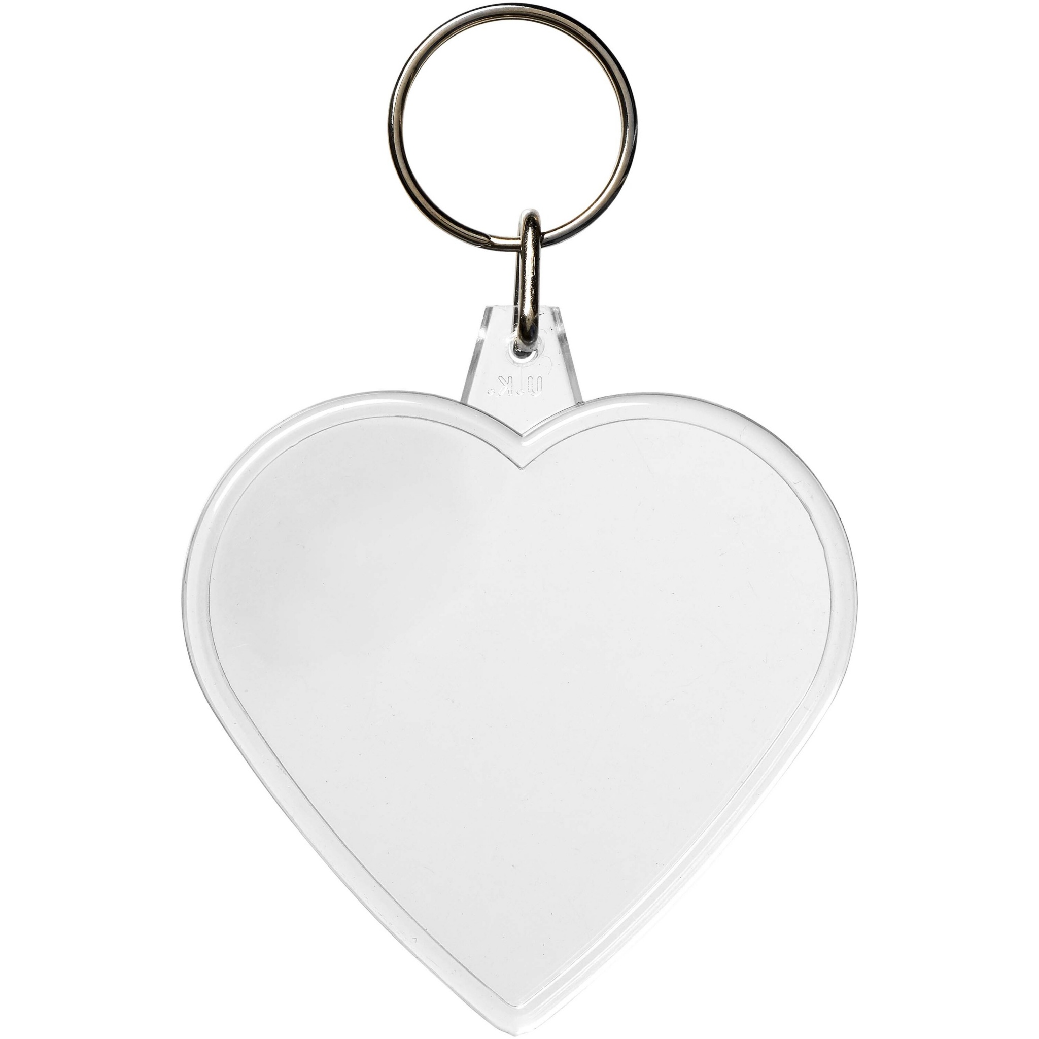 Прозрачный брелок в форме сердца с металлическим разъемным кольцом. Металлическая петля для крепления кольца представляет собой плоский профиль, что делает его идеальным для пересылки. Размеры печатной вставки: 5,8 см x 5,0 см.