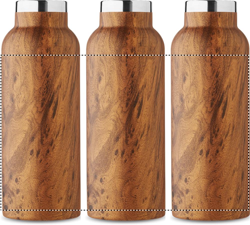 Термобутылка с двойными стенками из переработанной нержавеющей стали (90% переработанной нержавеющей стали и 10% нержавеющей стали) с деревянной крышкой и ручкой для переноски. Герметична. Объем: 500 мл.