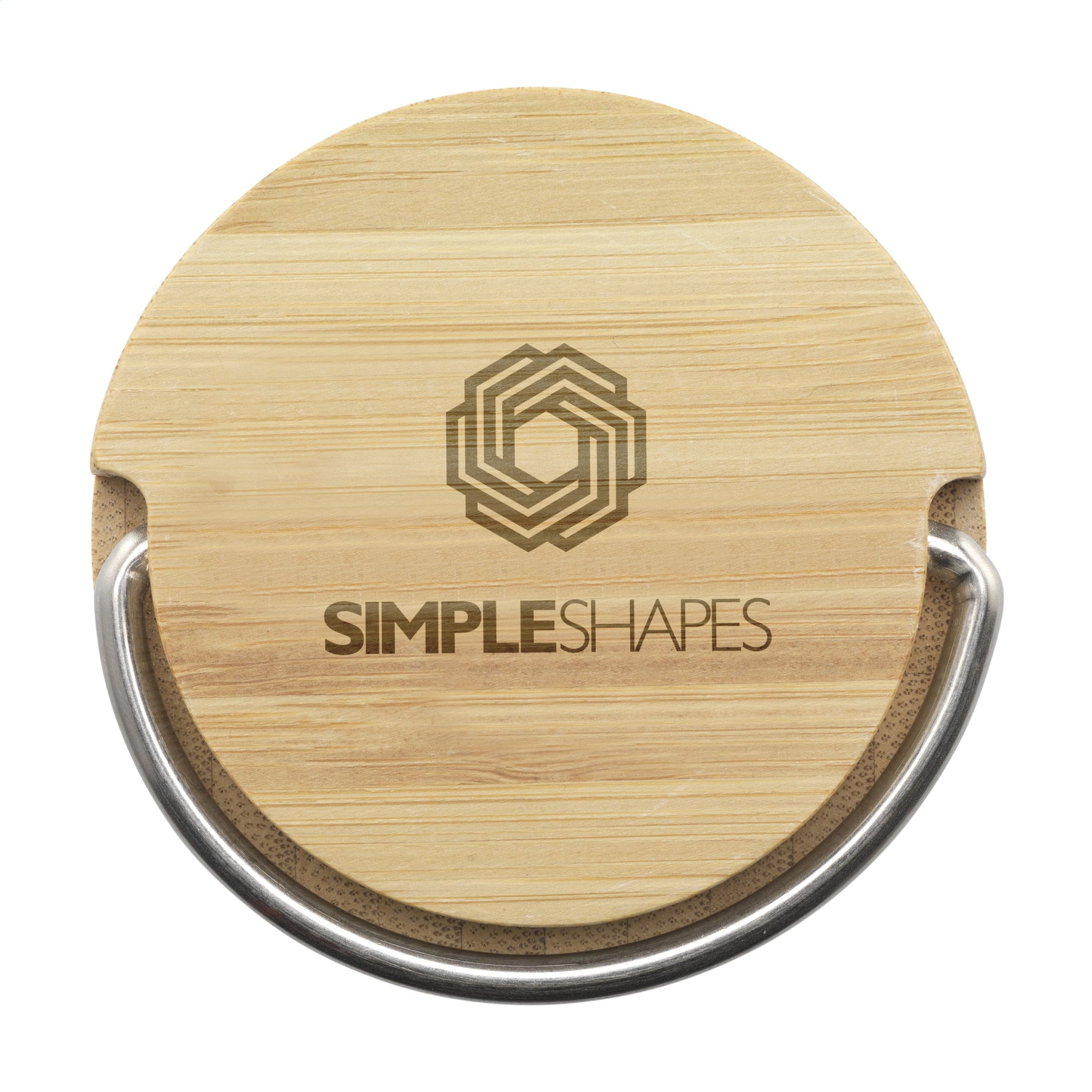 Бутылка с двойными стенками из высококачественного прозрачного боросиликатного стекла. Включает в себя заварник из нержавеющей стали с ситечком для чая, чтобы придать воде аромат. Оснащена бамбуковой винтовой крышкой и ручкой для переноски из нержавеющей стали. 100% герметичность. Емкость 300 мл. Каждый предмет поставляется в индивидуальной коричневой картонной коробке.