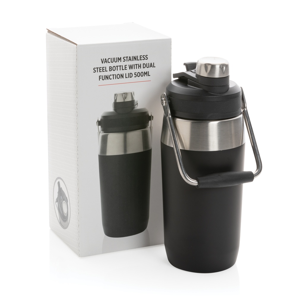Бутылка вакуумная из нержавеющей стали с двойной крышкой 500 мл, черный