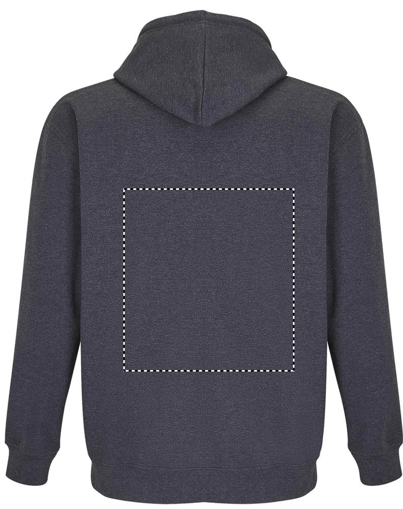 SOL'S CARTER, Толстовка с полной застежкой на молнию 80% хлопок - 20% переработанный полиэстер, рукава со вставками, покрой и пошив, манжеты и низ в рубчик 1X1, карман ''кенгуру'', капюшон на подкладке с однотонным шнурком и металлическими люверсами, застежка на потайную молнию, пластиковая молния с однотонным впрыском и однотонной металлической застежкой, джерси-полумесяц и тесьма на шее внутри воротника (1) серый меланж : 73 % хлопок / 20 % переработанный полиэстер / 7 % вискоза, (2) угольный меланж: 60 % хлопок / 40 % переработанный полиэстер. Соответствие размеров см. в таблице размеров в разделе документации к изделию.