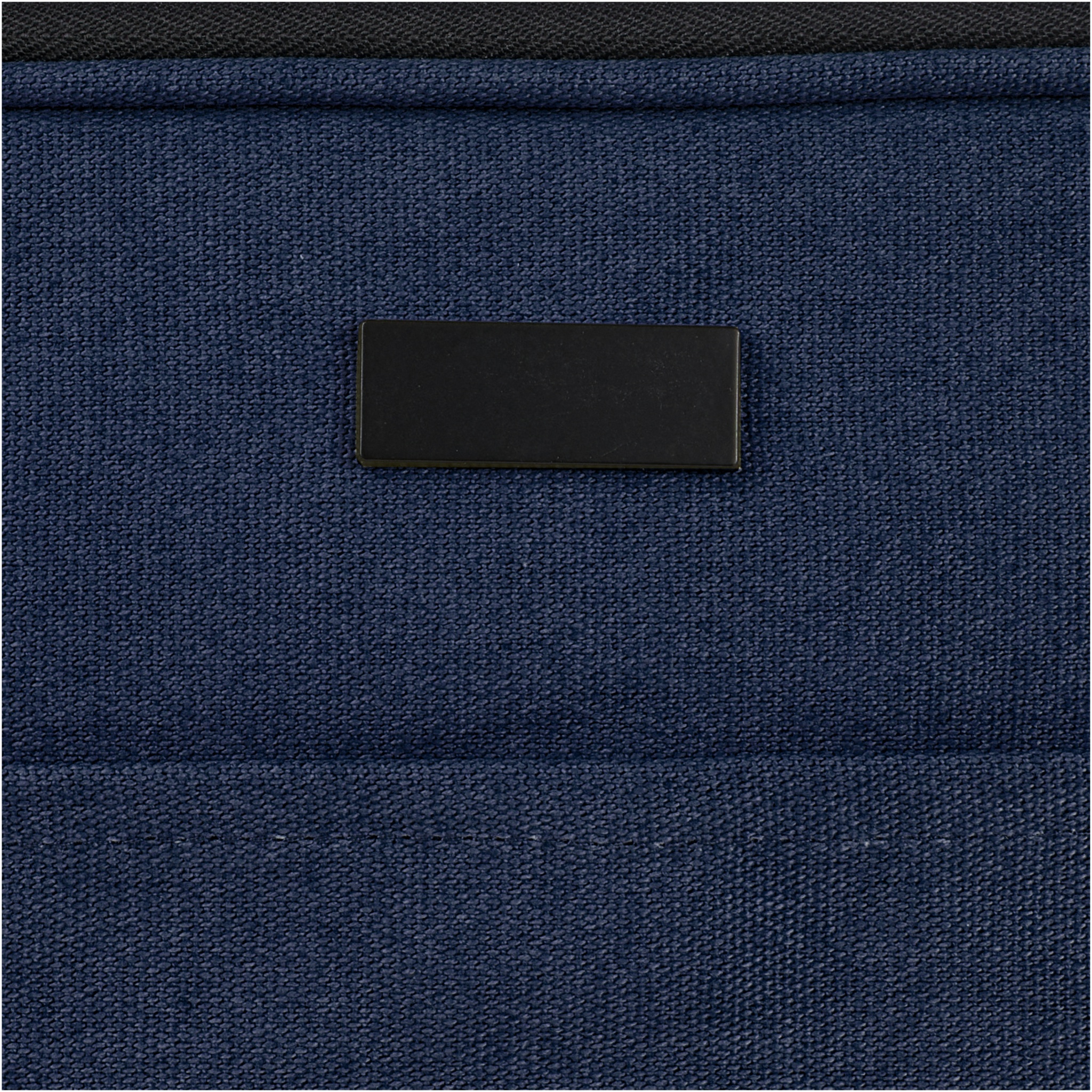 Изготовленный из высокопрочных экологичных материалов, брезента и подкладки из переработанного ПЭТ, соответствующих стандарту GRS, чехол для ноутбука диагональю 14 дюймов Joey имеет защищенное отделение для ноутбука и открытый передний карман с застежкой на липучке. Декоративная металлическая пластина может придать логотипу сияние благодаря утонченному матовому покрытию.