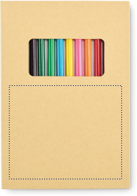 Children’s drawing set with 50 recycled paper sheets and 12 wooden colouring pencils. With kraft paper cover.