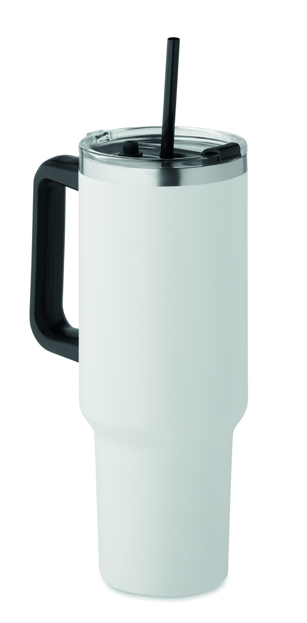 Стакан из переработанной нержавеющей стали с двойными стенками (90% переработанной нержавеющей стали и 10% нержавеющей стали) с крышкой-соломинкой, включая полиэтиленовую трубочку. Емкость 1200 мл.