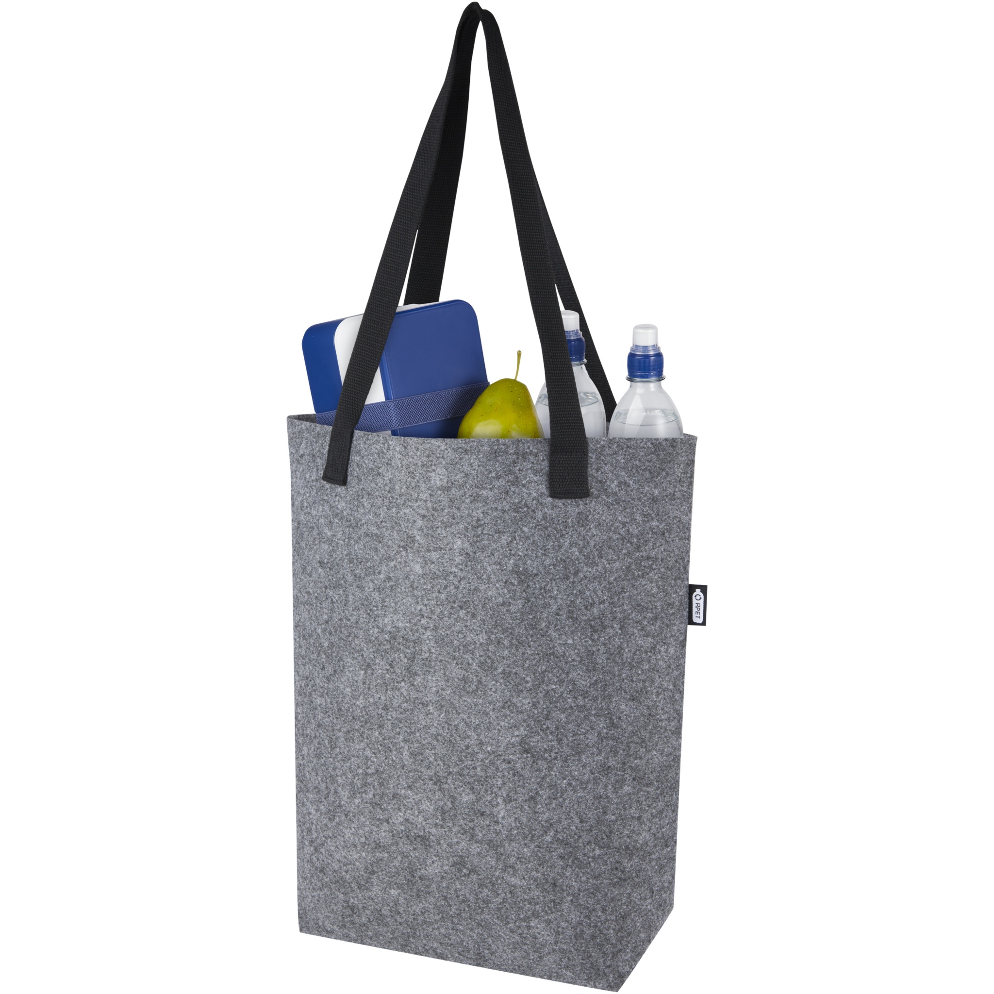 Практичная эко-сумка из мягкого и прочного высококачественного фетра, переработанного по стандарту GRS. Имеет длинные тканые ручки из хлопка (30 x 2,5 см) для оптимального комфорта при ношении и широкое дно, обеспечивающее максимальное пространство для хранения.
