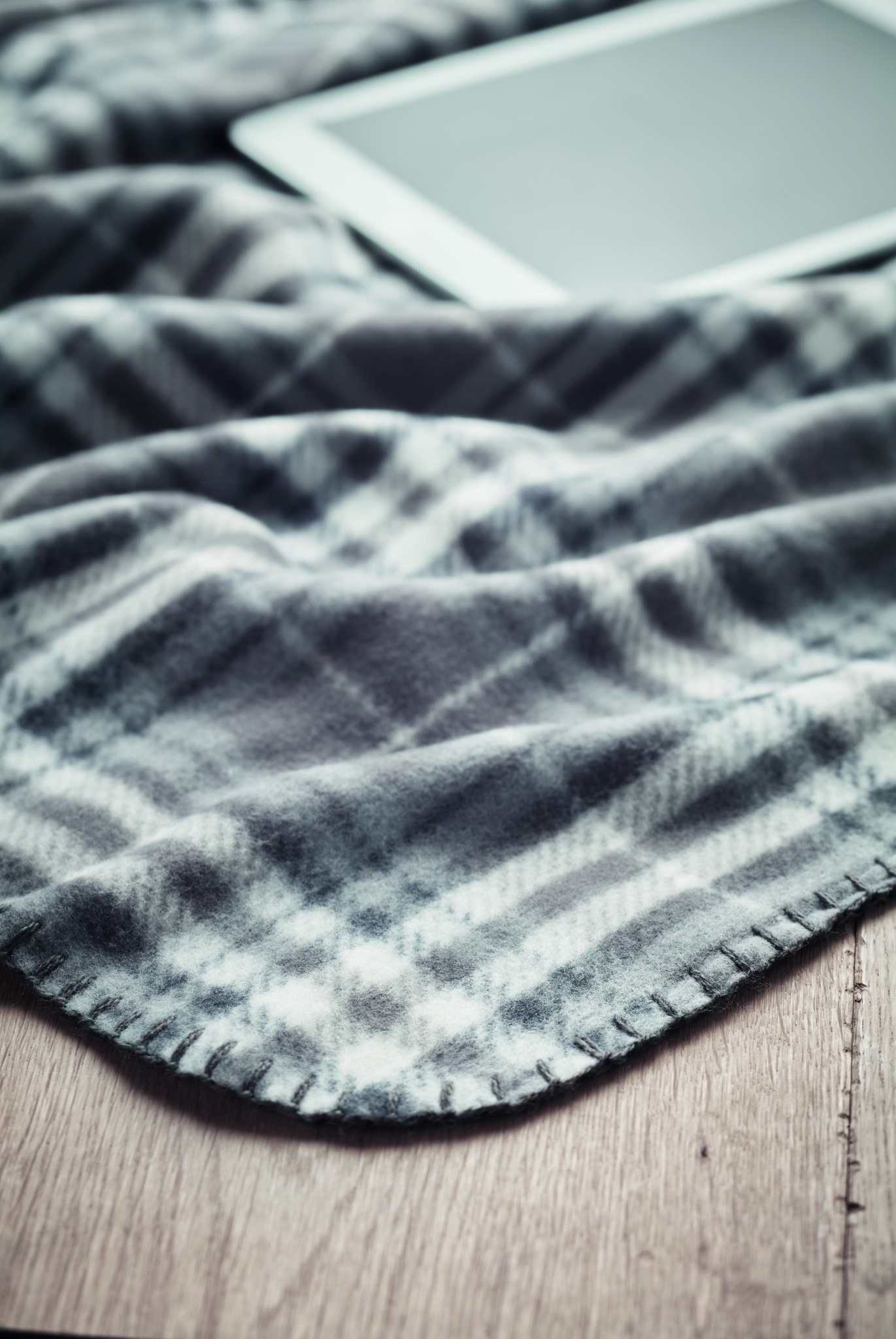 Флисовый плед в клетку из RPET. Чехол также из RPET. Флис 180 гр / м².