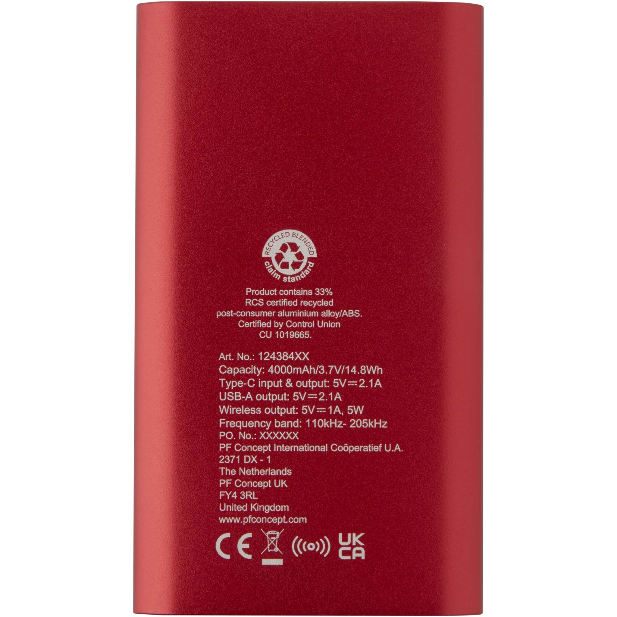 Портативное зарядное устройство с входным/выходным портом Type-C и портом USB-A, что означает возможность одновременной зарядки двух устройств. Также поддерживает беспроводную зарядку мощностью 5 Вт для всех устройств с поддержкой Qi. В портативном зарядном устройстве используется литий-полимерный аккумулятор емкостью 4000 мАч, который обеспечивает максимальную выходную мощность 10 Вт. Это портативное зарядное устройство на 28% изготовлено из переработанного пластика, сертифицированного RCS. В комплект поставки входит зарядный кабель TPE Type-C — USB-A.