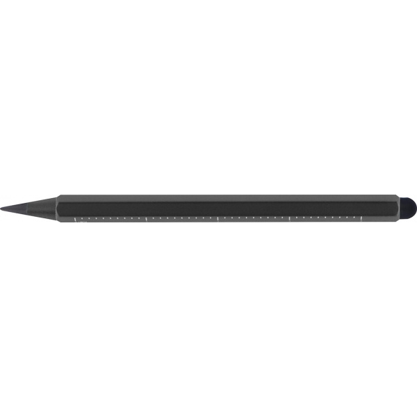 Ручка без чернил из алюминия с функцией касания и шкалой в см и дюймах. Грифель изготовлен из смеси графита и металла, что делает его чрезвычайно прочным. Ваш логотип будет выгравирован на свободном месте на корпусе.