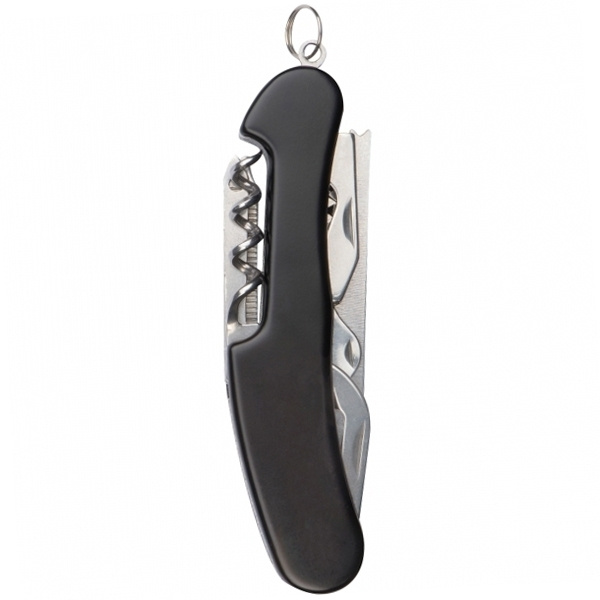 Карманный нож из 14 предметов из нержавеющей стали, состоящий из: консервный нож, ножницы, рыболовный крючкорез, рыбочистка, нож-пила, нож, шлицевая отвертка, консервный нож, кольцо для ключей, штопор, пилка для ногтей, шило и крестовая отвертка. Мы гравируем ваш логотип на ноже.